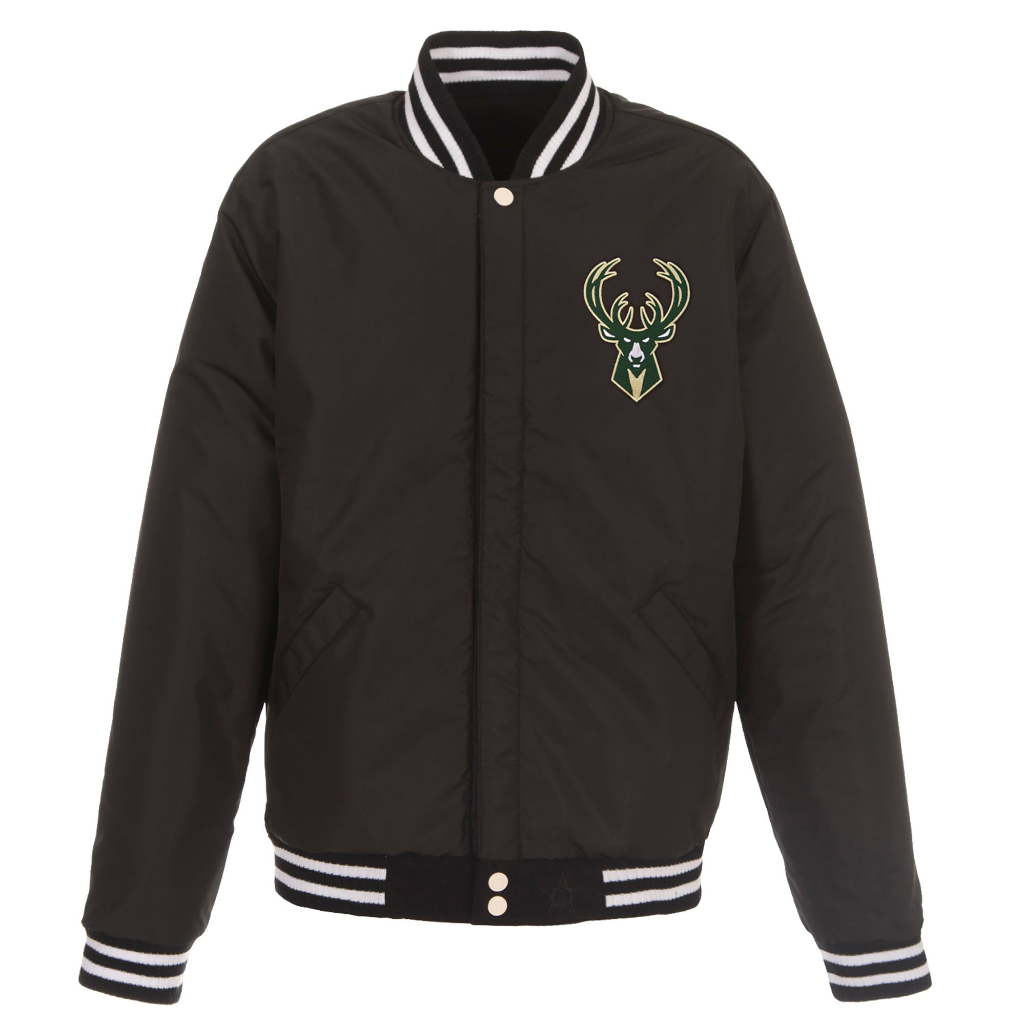 JH Design Men's Milwaukee Bucks Black Varsity Jacket