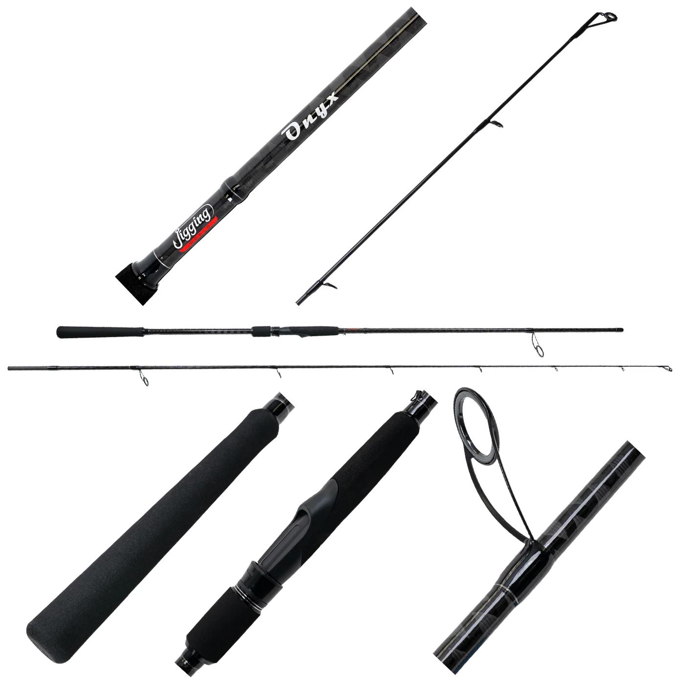Jigging World Onyx Surf Rods are our economically priced surf rod series crafted with 30T carbon fiber. What you get is a light weight, yet durable & powerful surf rod without digging deep into your pockets. This series started out with the 8' & 9' models that are perfect for throwing light plugs at Striped Bass, Bluefish, Snook & Red Drum and walking the beaches casting jigs at Fluke and Flounder. Newly added and rounding out the entire lineup are the longer models that can be used both for throwing plugs and bait fishing off the beach! You'll be hard pressed to find a better surf rod in its price point that not only feels great in your hands, but delivers sensitivity and power out on your next surf expedition.
