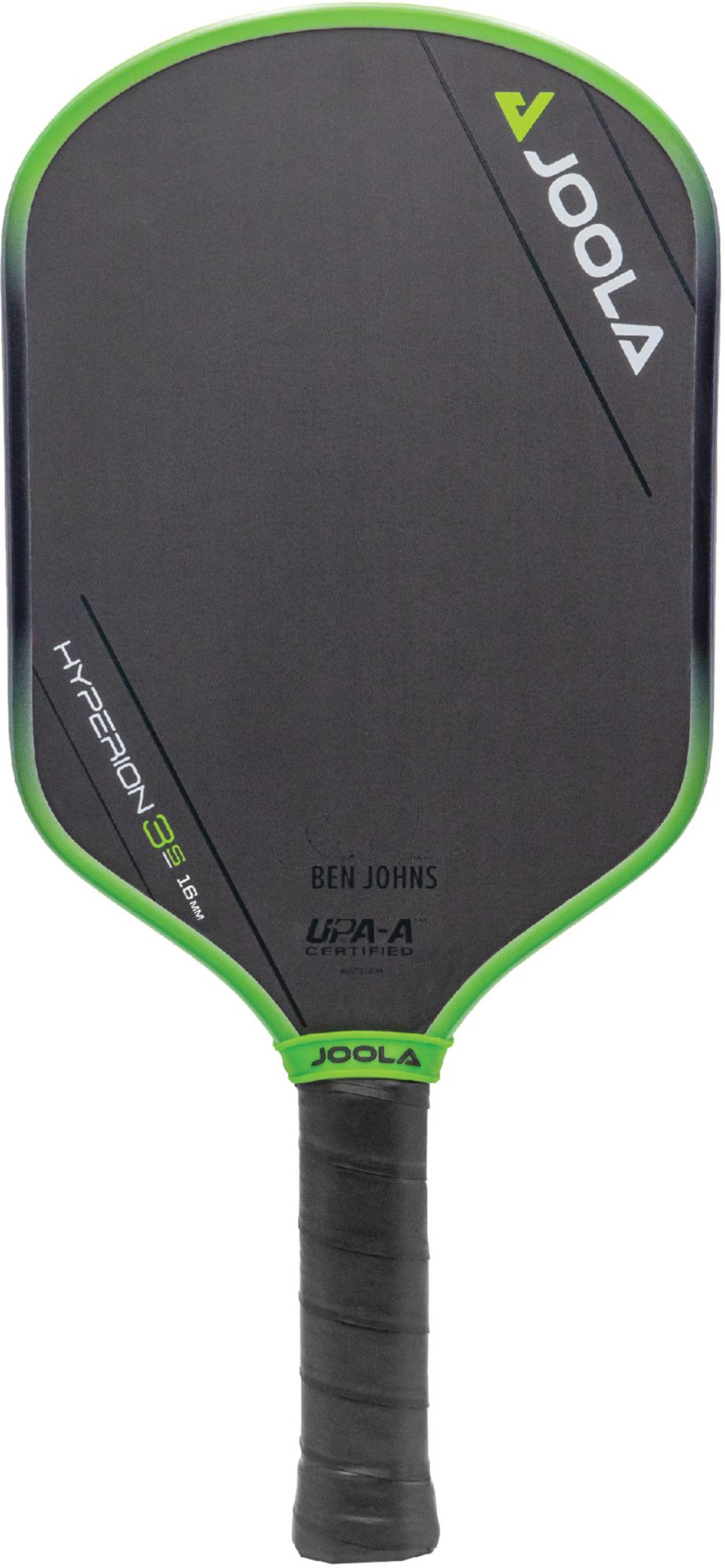 The Ben Johns Hyperion 3S 16mm pickleball paddle improves on JOOLA’s iconic Aero Curve shape by adding a new and improved core, combined with existing Propulsion Core technology to deliver a paddle with potent power and sharp control. Built for enhanced stability, this paddle gives the player the ability for flawless shot placement and elevated handling. Each 3S paddle adheres to the official performance standards of UPA-A.