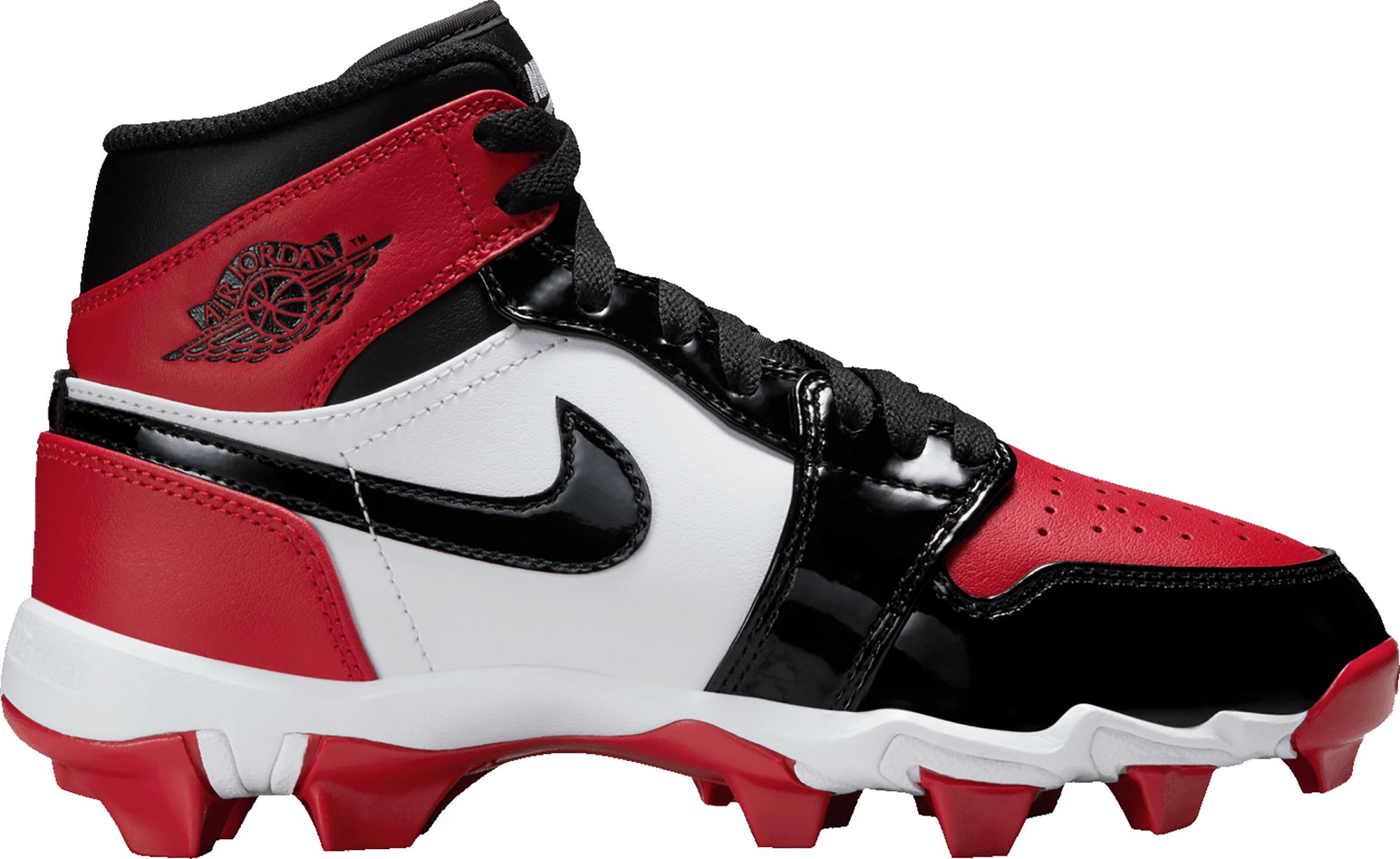 Jordan 1 Kids’ Mid Multisport Cleats combine the iconic AJ1 design with the functionality needed for the field, featuring synthetic leather for added durability and structure. These cleats are engineered for quick cuts and pivots with wide stud placement and external pods delivering optimal traction. Perfect for young athletes, they ensure maximum performance across various sports.