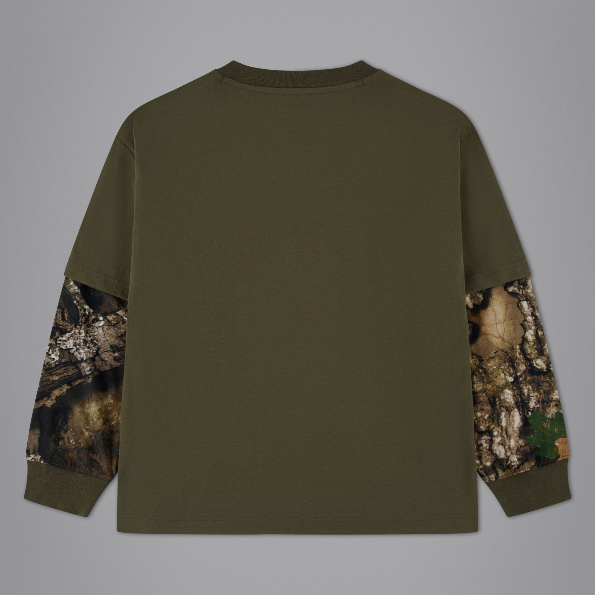 This Jordan tee is made of smooth cotton/poly jersey in a roomy silhouette with a tagless crewneck for comfy wear and dropped shoulders that relax the fit. The undersleeves feature an allover realtree graphic print and creates the look of a long sleeve tee layered underneath a short sleeve tee. Style with the Jordan MVP Realtree Fleece Pants for a cozy, coordinated look.