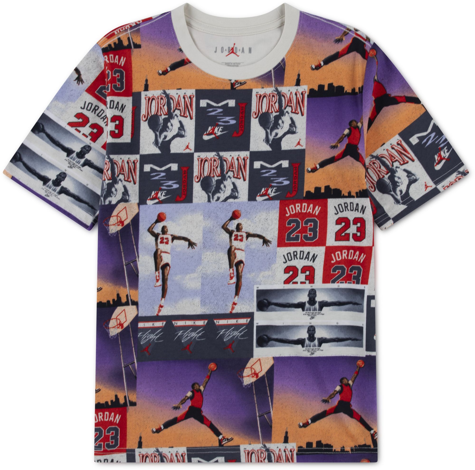 Featuring an allover collage style graphic print, this standard fit tee is a must for any Jordan fan. It's made of smooth, blended cotton jersey in a classic silhouette with a tagless crewneck for comfy, fuss-free wear.