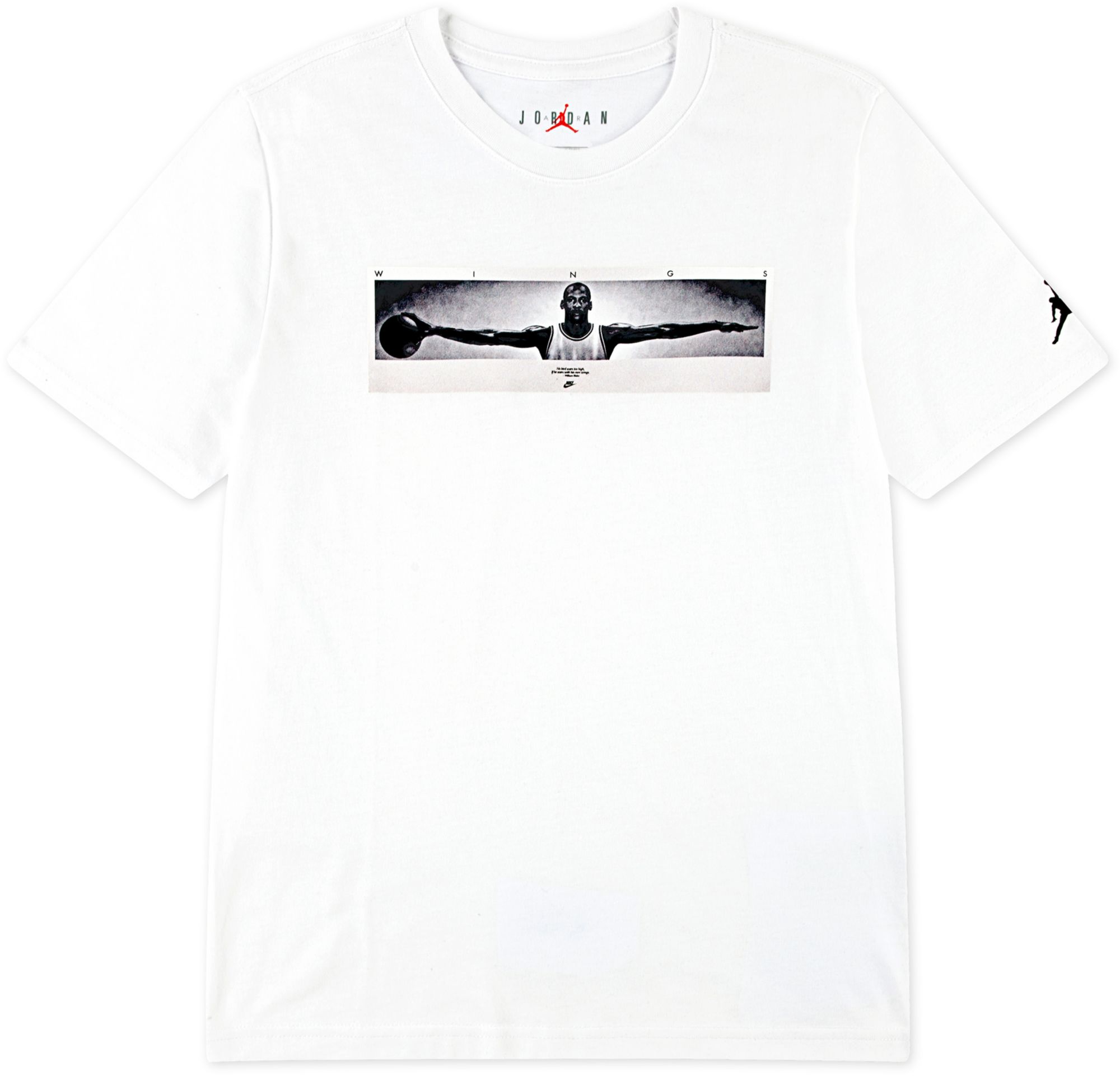 Featuring motivational text and a print of Michael Jordan showing off his wingspan, this Jordan tee is essential for any Jordan fan. It's made of soft jersey fabric in a short-sleeve silhouette with a tagless crewneck for comfy wear.