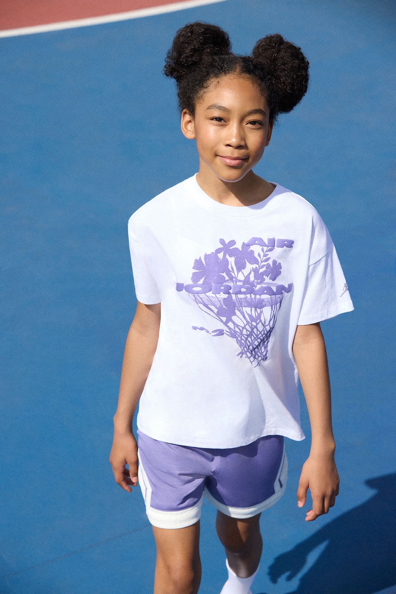 This tee quite literally gives the game of basketball and Number 23, living legend Michael Jordan, his flowers - graphically, that is. It's made of cotton/poly jersey in an oversized silhouette that has a laid-back look and will have you feeling cozy. The tagless crewneck adds to the comfy feel, and dropped shoulders add to the relaxed, borrowed-from-big-sibling fit.