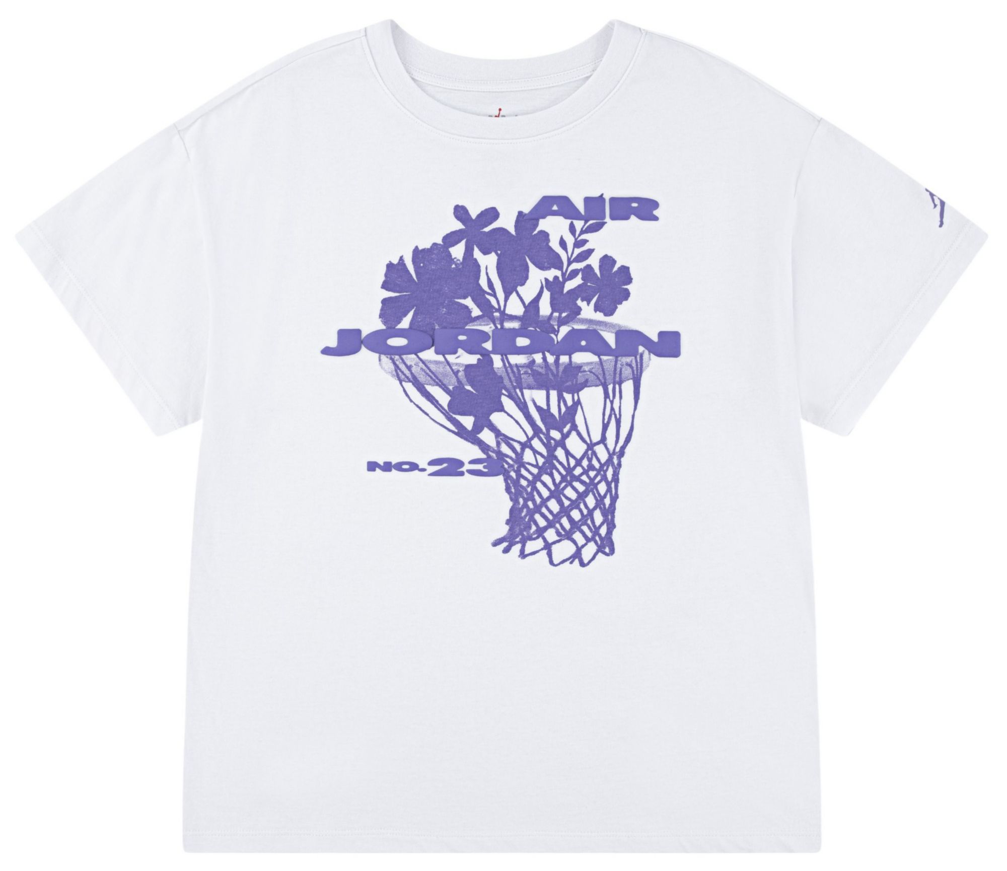 This tee quite literally gives the game of basketball and Number 23, living legend Michael Jordan, his flowers - graphically, that is. It's made of cotton/poly jersey in an oversized silhouette that has a laid-back look and will have you feeling cozy. The tagless crewneck adds to the comfy feel, and dropped shoulders add to the relaxed, borrowed-from-big-sibling fit.