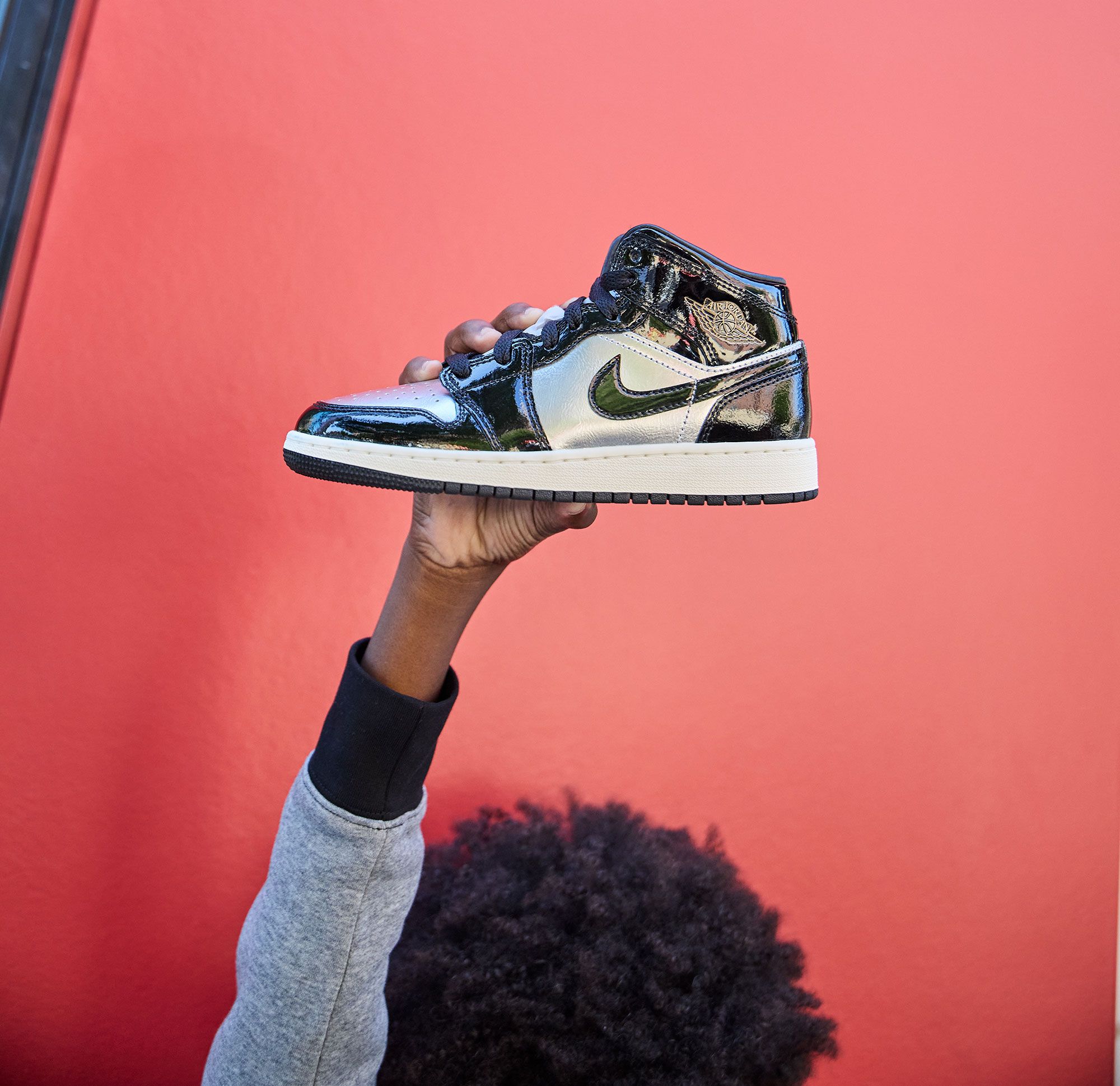 You're sure to shine when steppin' out in these AJ1s. Slick patent leather lets shiny metallic panels pop for style you can't miss. But the real gift is how good all your 'fits look when paired with these standout kicks.