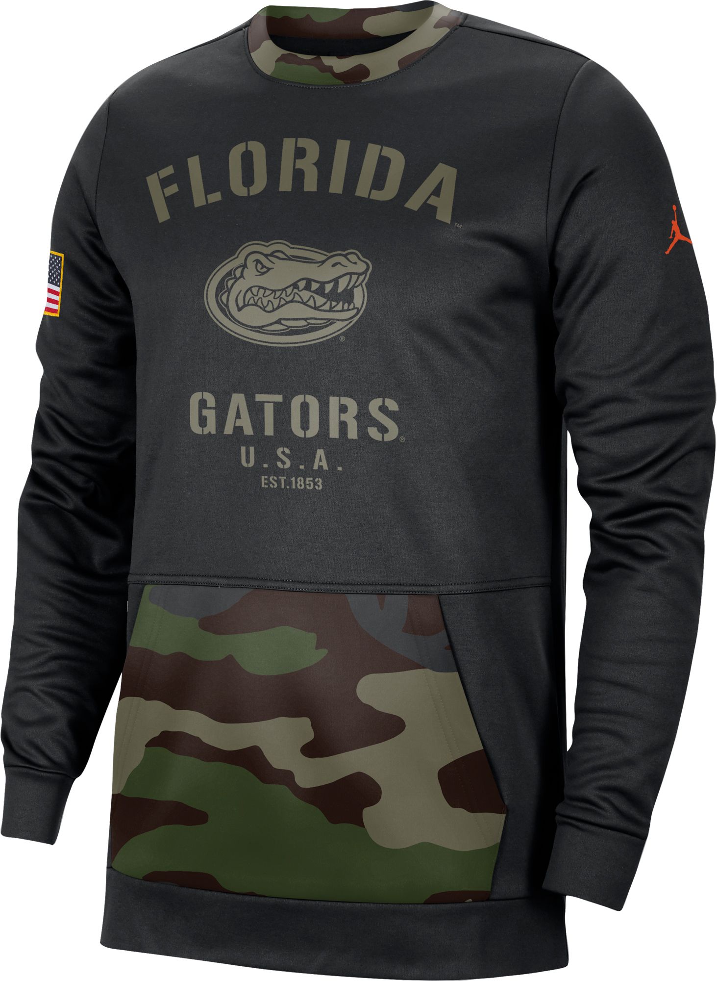 Jordan Men's Florida Gators Black/Camo Therma Military Appreciation Crew Neck Sweatshirt