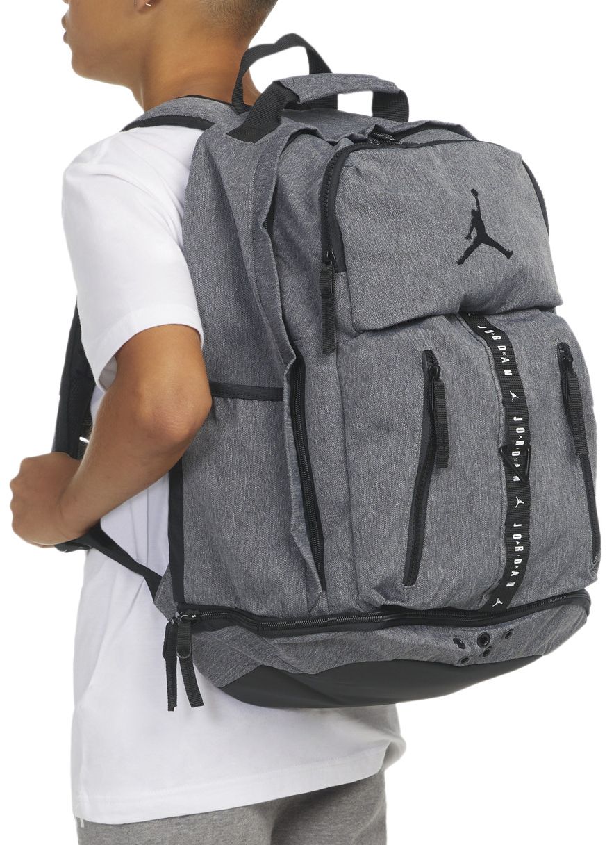 Carry your stuff in DNA style with this spacious backpack. Inside the main zippered compartment is a laptop sleeve. Keep up with hydration by using the side bottle pockets, toss items you need quick and easy access to in the front zip pockets and the adjustable padded straps provide comfortable wear. What really puts this backpack over the top is the ventilated shoe garage at the bottom!