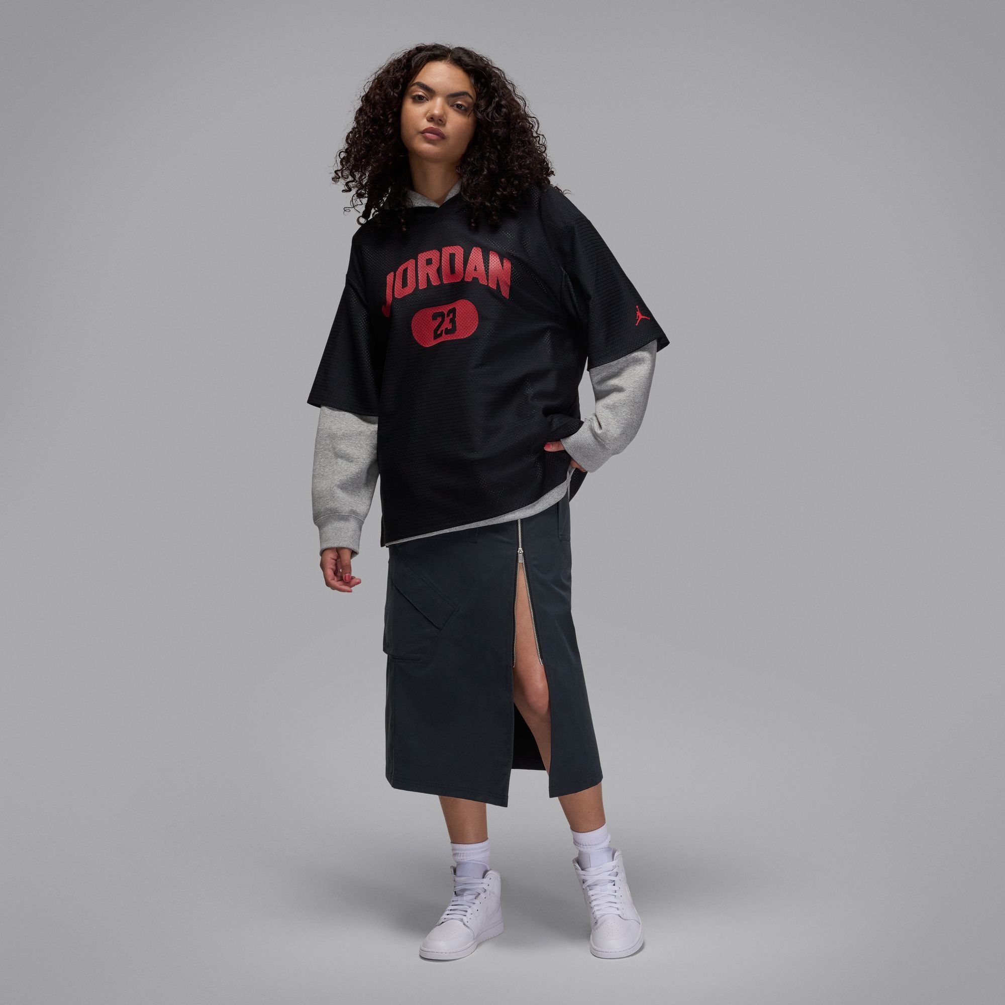 Comfortable and cool, this lightweight mesh jersey is oversized for an extra roomy fit. Athletic-inspired branding and a ribbed neckline give you classic jersey style.