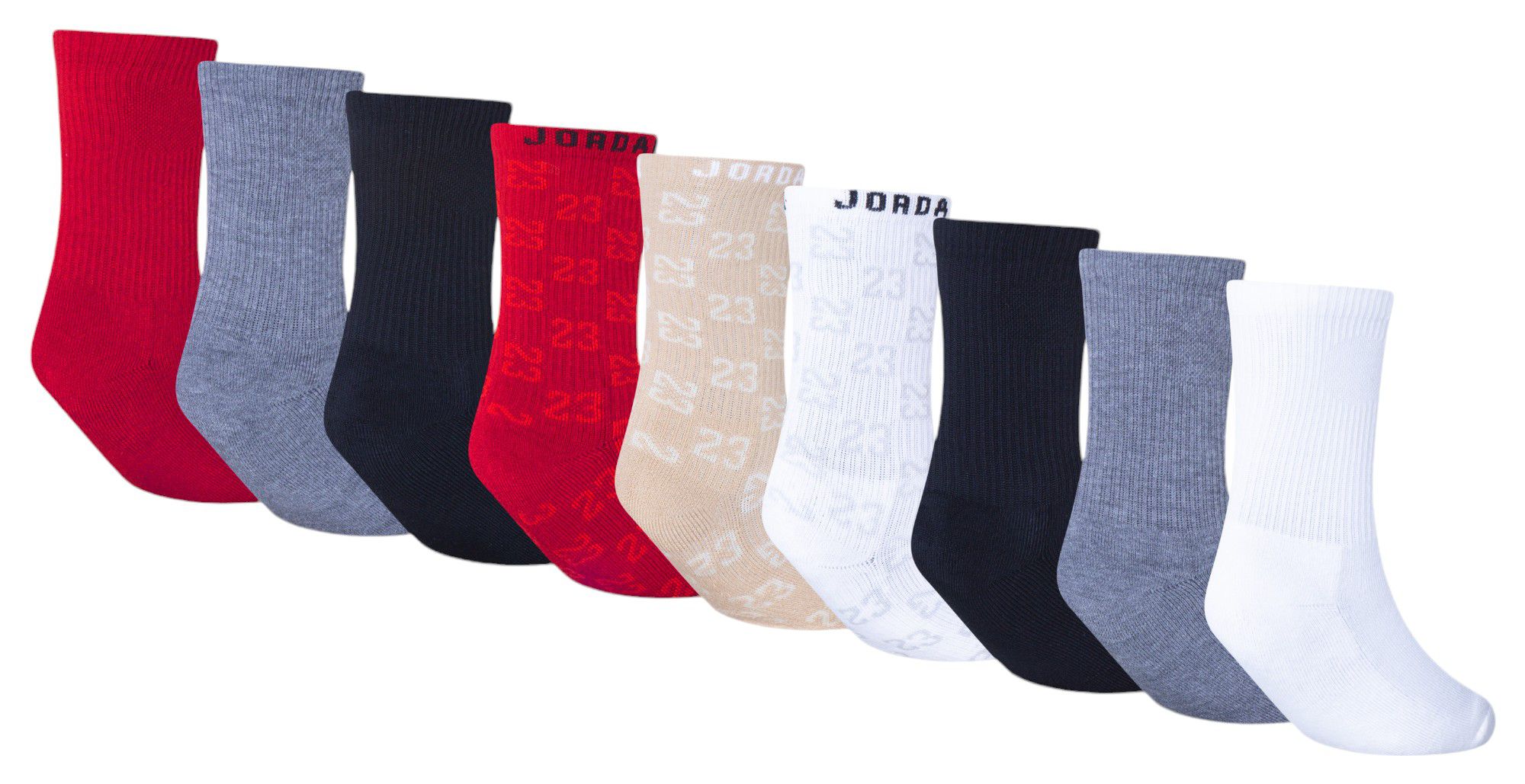 Includes 6 pairs of solid socks and 3 pairs of socks with an allover jacquard 23 monogram pattern
