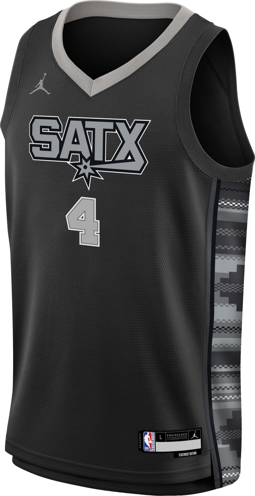 Jordan Youth San Antonio Spurs De'Aaron Fox #4 Black Swingman Statement Jersey