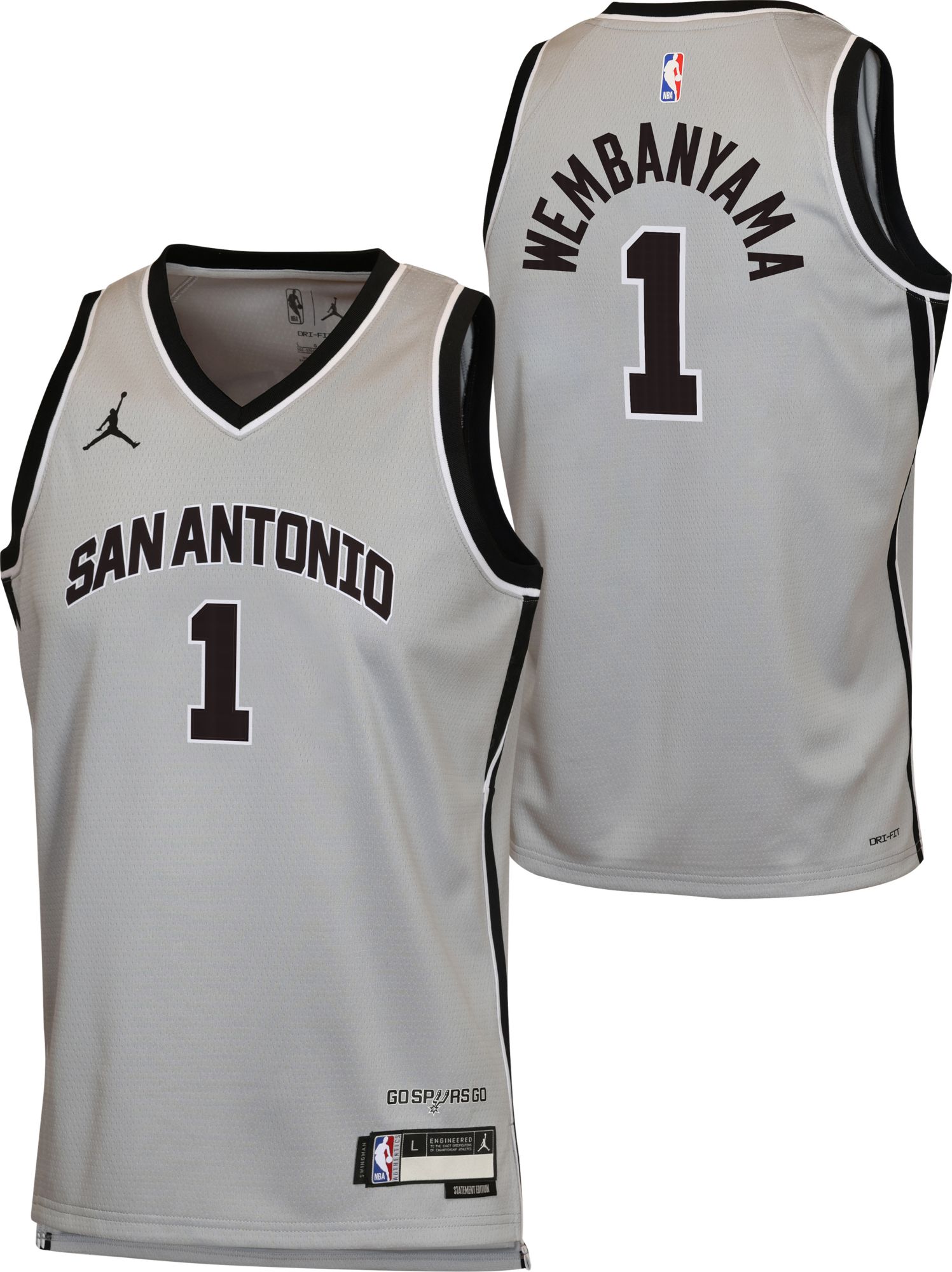 Jordan Youth San Antonio Spurs Victor Wembanyama #1 Grey Swingman Statement Jersey