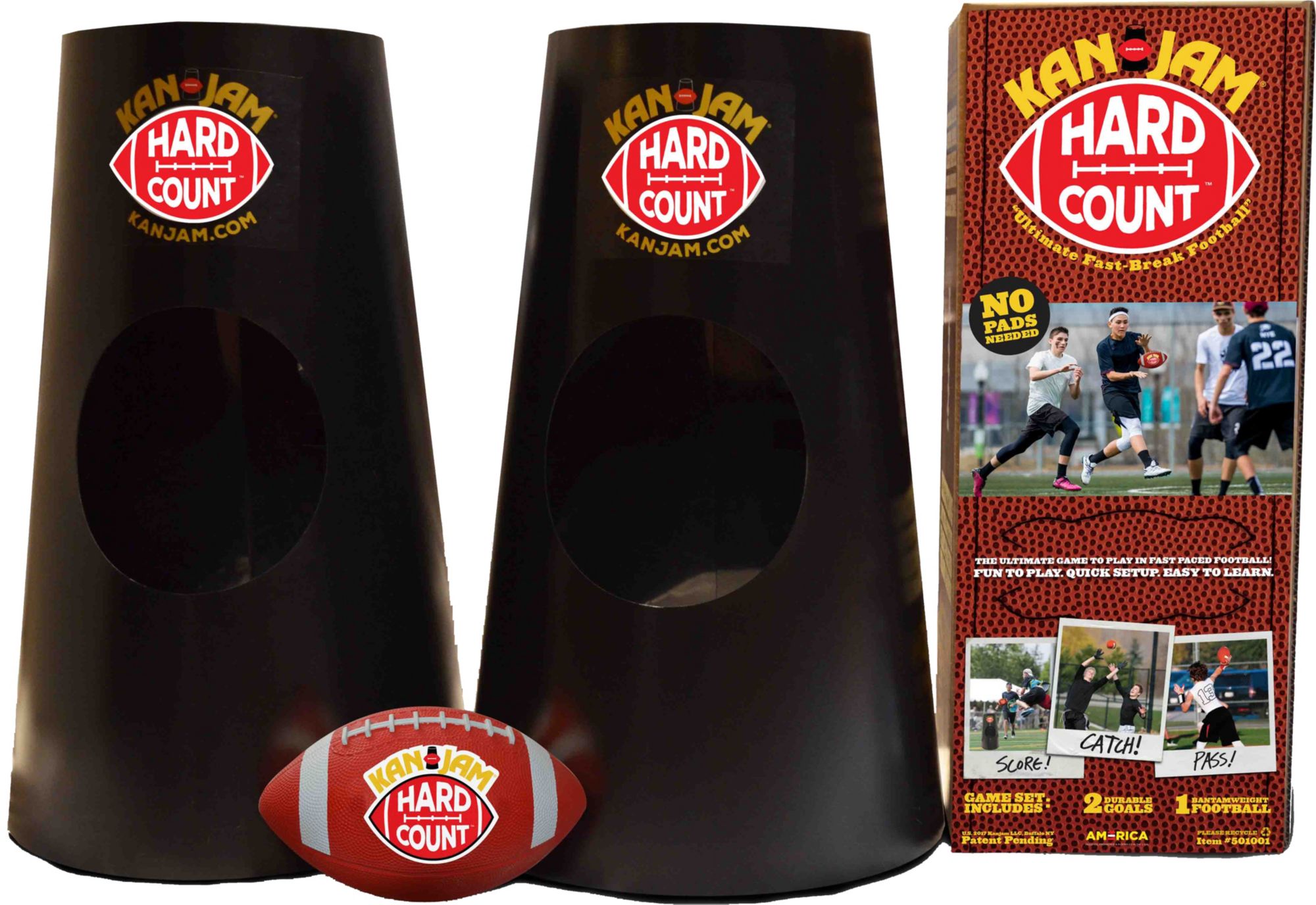 Take KanJam® to the next level by adding football to the mix with the KanJam® HARD COUNT Game Set. This outdoor game combines the concepts of the KanJam® Disc Game, Ultimate, and Football to create a thrilling, fast-paced game. It requires only 20 yards of space to play, making it the perfect backyard game for any occasion. Forget about just tossing a football around at your next tailgate and set up the KanJam® HARD COUNT Game Set instead.