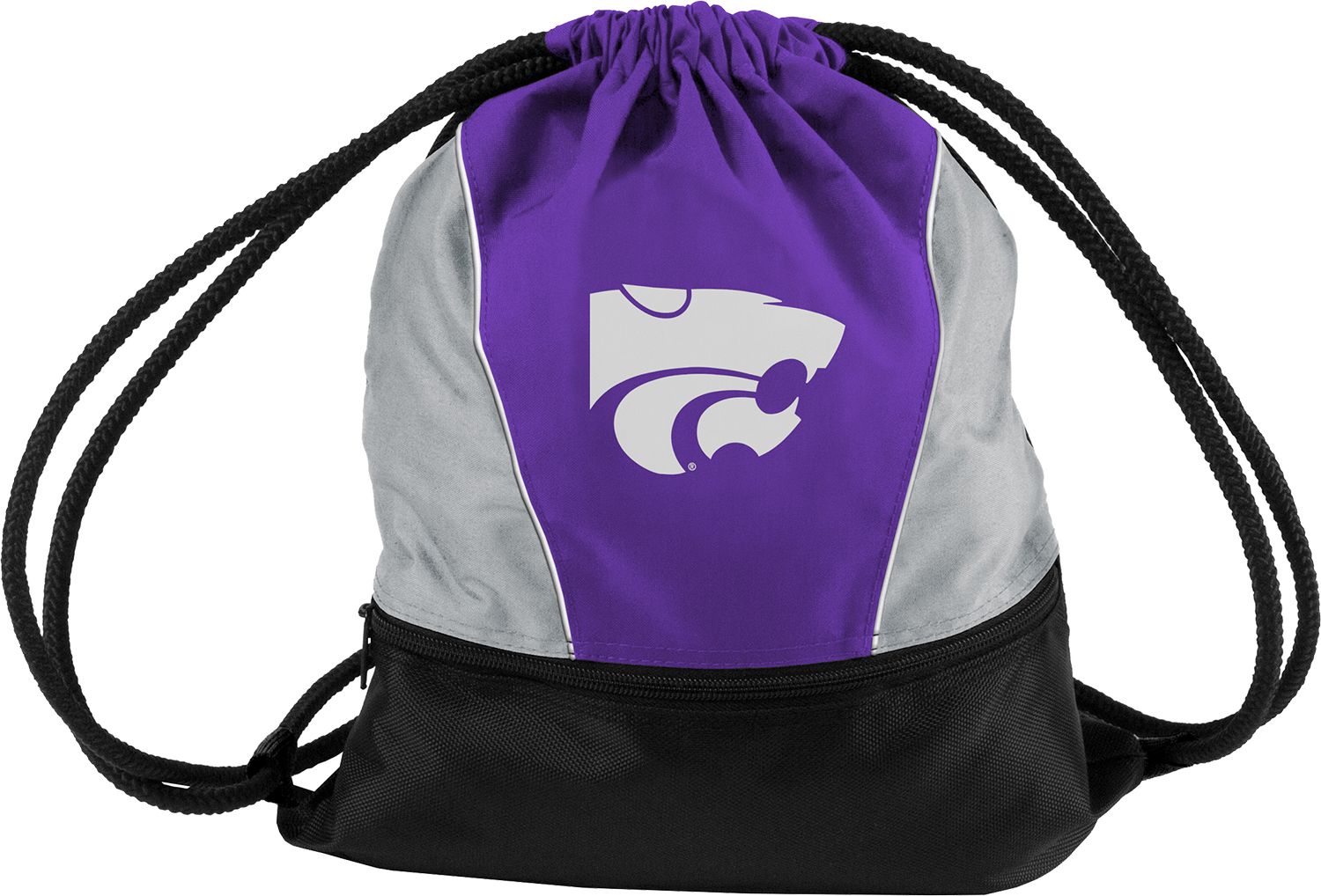 Sport your team spirit on-the-go with the Logo® Kansas State Wildcats String Pack. Ideal for the gym or stadium, this Wildcates backpack’s drawstring shoulder straps offer an easy way to carry your gear. Its durable polyester material ensures that this pack will hold up. Featuring the Kansas State logo and colors, this Logo® pack displays your Wildcates allegiance in style. Put your small belongings in the zipper pouch for secure storage.