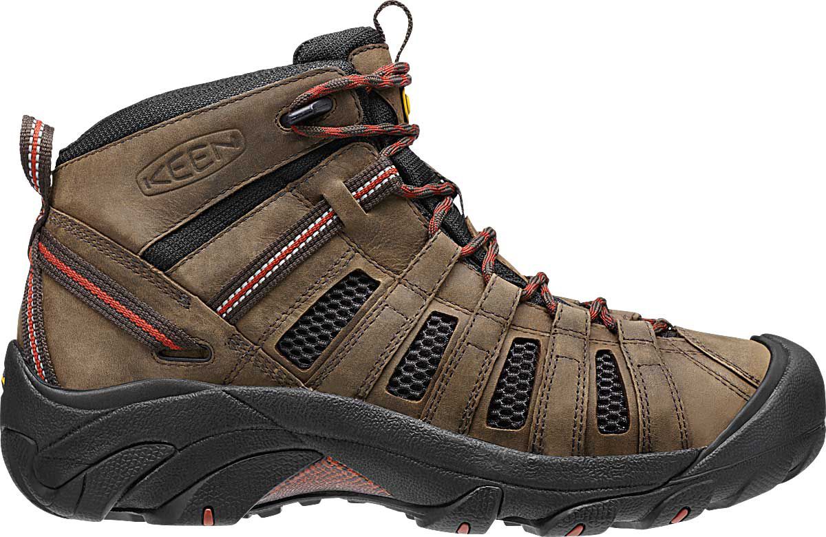Find your niche amid nature in the KEEN® men's Voyageur Mid hiking boot. Ideal for lengthy hikes, a durable mid-cut upper delivers superior protection above the ankle, while a dual-density compression-molded EVA midsole provides cushioning for comfort. An ESS shank boosts torsional stability, and a non-marking rubber outsole maximizes traction on a variety of earthy surfaces. Show your adventurous spirit in the Voyageur Mid boot.