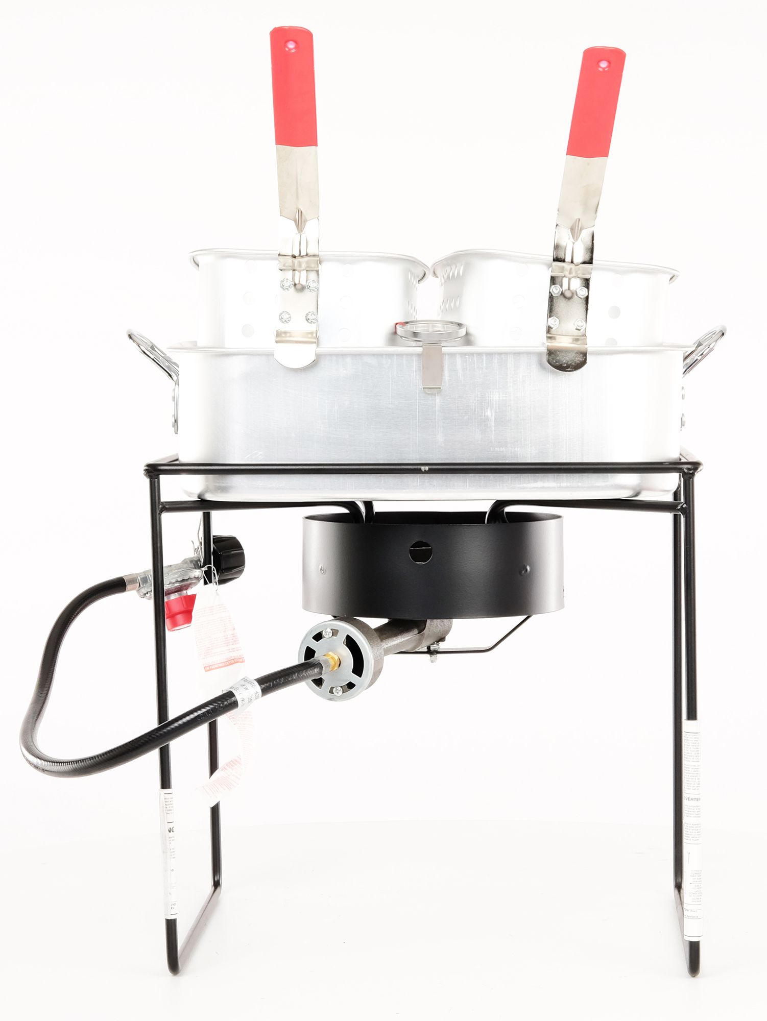 Get ready to feed the whole neighborhood with the King Kooker® 16” Fish Fryer, Aluminum Pot and Baskets. This propane outdoor cooker features a 54,000 BTU cast burner with a recessed top for added safety, and its portable, four-legged design provides a stable cooking platform. The rectangular, 15 qt. fry pan and two baskets with heat-resistant handles let you cook multiple foods simultaneously, so you can get dinner ready faster.