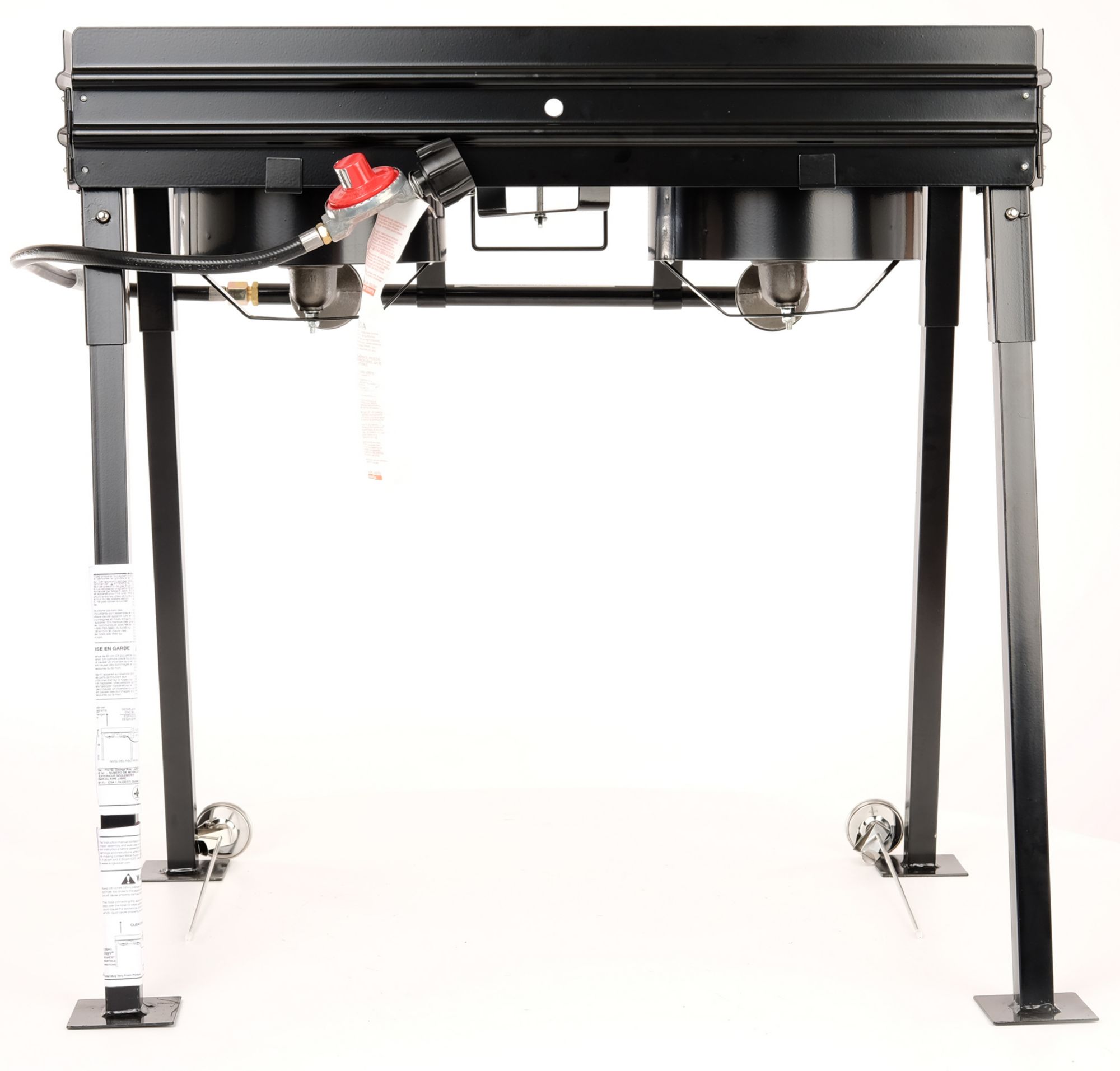 Add a little extra flare to next cookout with the King Kooker® 25” Double Burner Camp Stove. Constructed with a portable design, this propane camp stove features two 54,000 BTU cast burners to meet all of your cooking needs. The included deep-fry thermometer ensures you’re cooking at the perfect temperature every time, and the wind guard keeps the stove’s flame from going out. With an added recipe booklet, you’ll be everyone’s favorite chef.