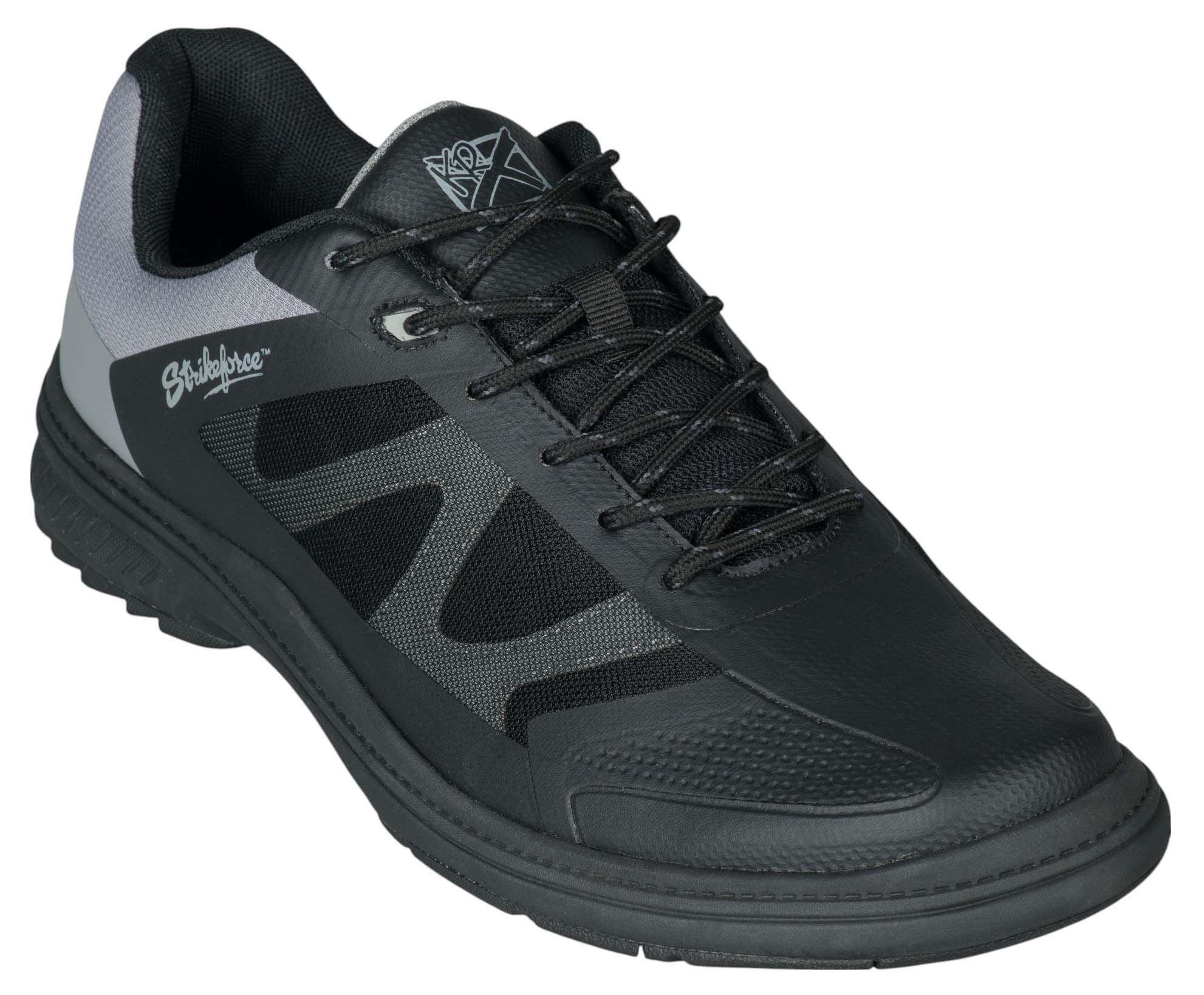 The Strikeforce Epic men's bowling shoe has breathable mesh and microfiber upper for a more comfortable fit. EMEVA outsole is lightweight and provides more cushioning for maximum comfort. Epic comes with a removeable number 8 White Microfiber slide pad and number 5 graduated rubber fixed heel on the slide shoe. On the Epic push foot a T03 rubber push off sole and a number 2 shark tooth heel. Extra slide soles sold separately.