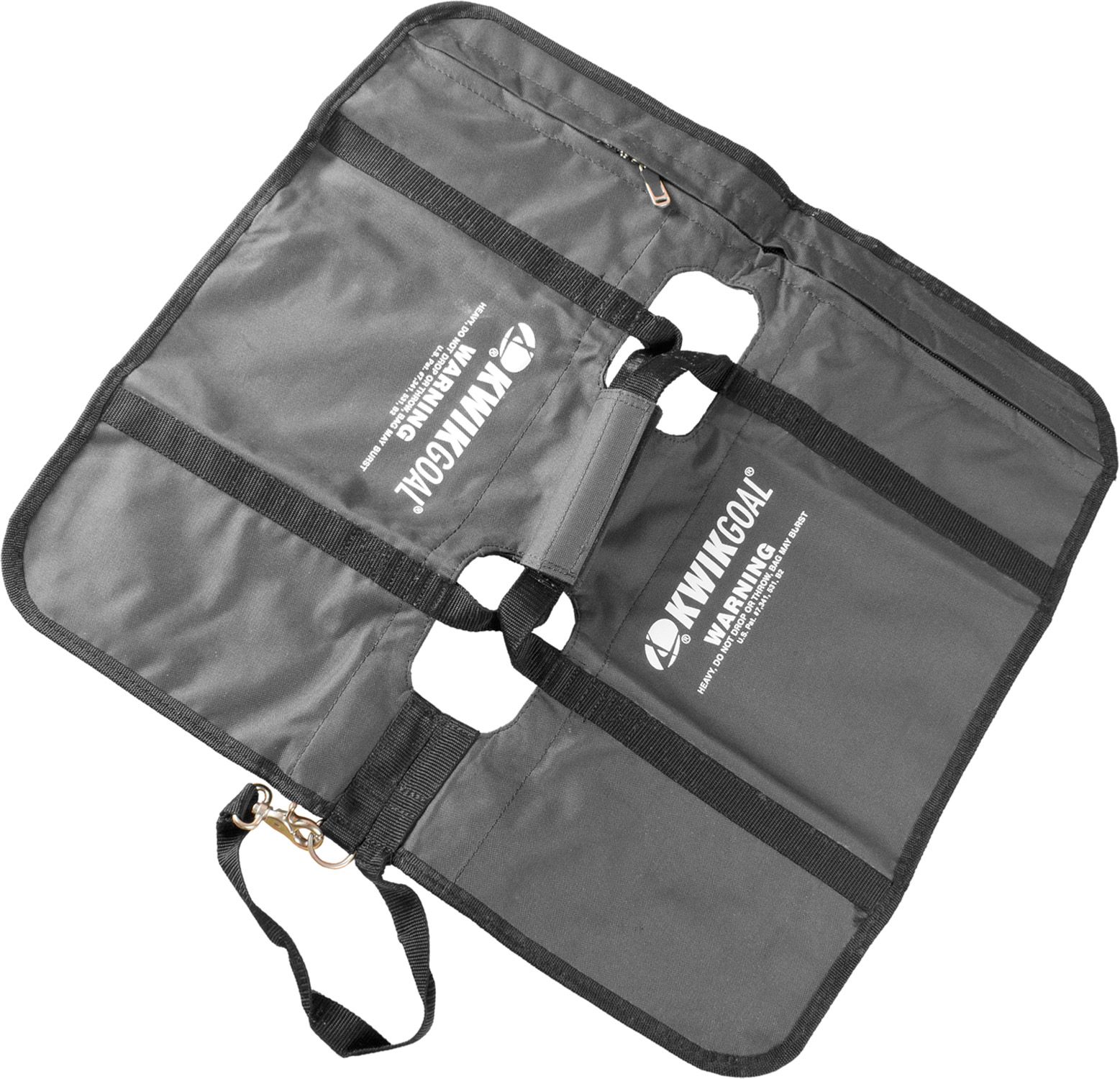 Keep your soccer goal in the perfect position with the Kwik Goal® Saddle Anchor Bag. Fill the Saddle Anchor Bag with up to 40 lbs of sand (not included) to keep your goal in place throughout the game. The bag straddles the bottom bar of the goal to provide the perfect counter-balance. The Saddle Anchor Bag features a stainless steel clasp and “D” ring for easy attachment to your goal.