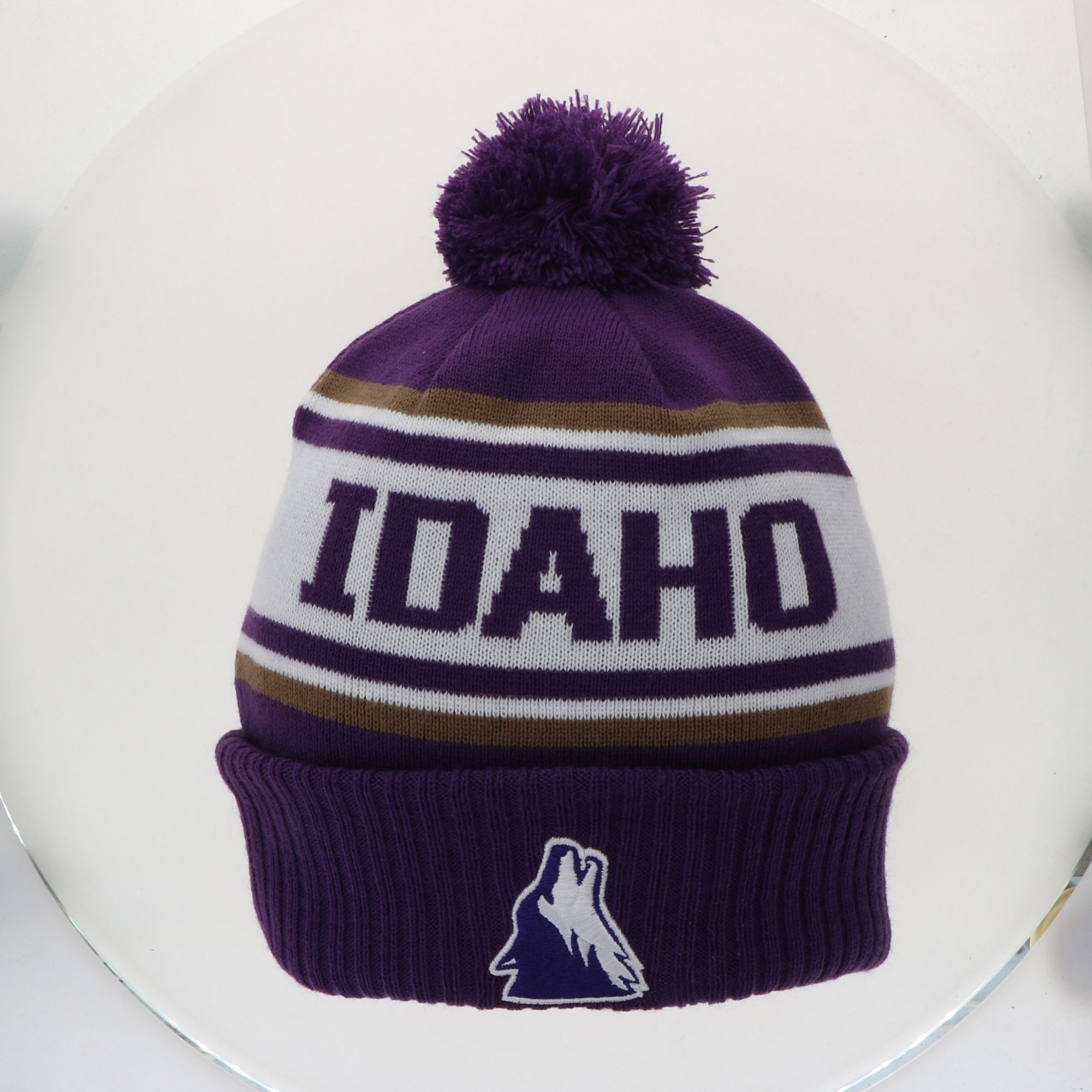 League-Legacy Adult College of Idaho Yotes Purple Pom Knit Beanie