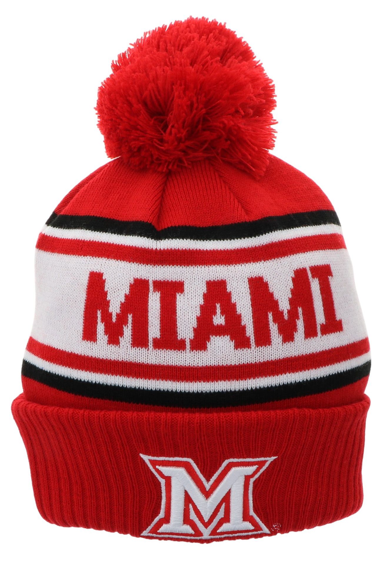 League-Legacy Adult Miami RedHawks Red Pom Knit Beanie