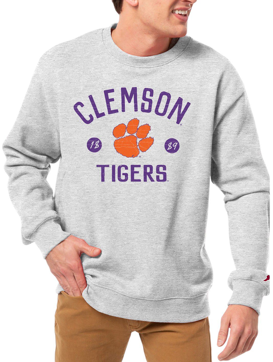 League-Legacy Men's Clemson Tigers Grey Essential 2.0 Fleece Crew Neck Sweatshirt