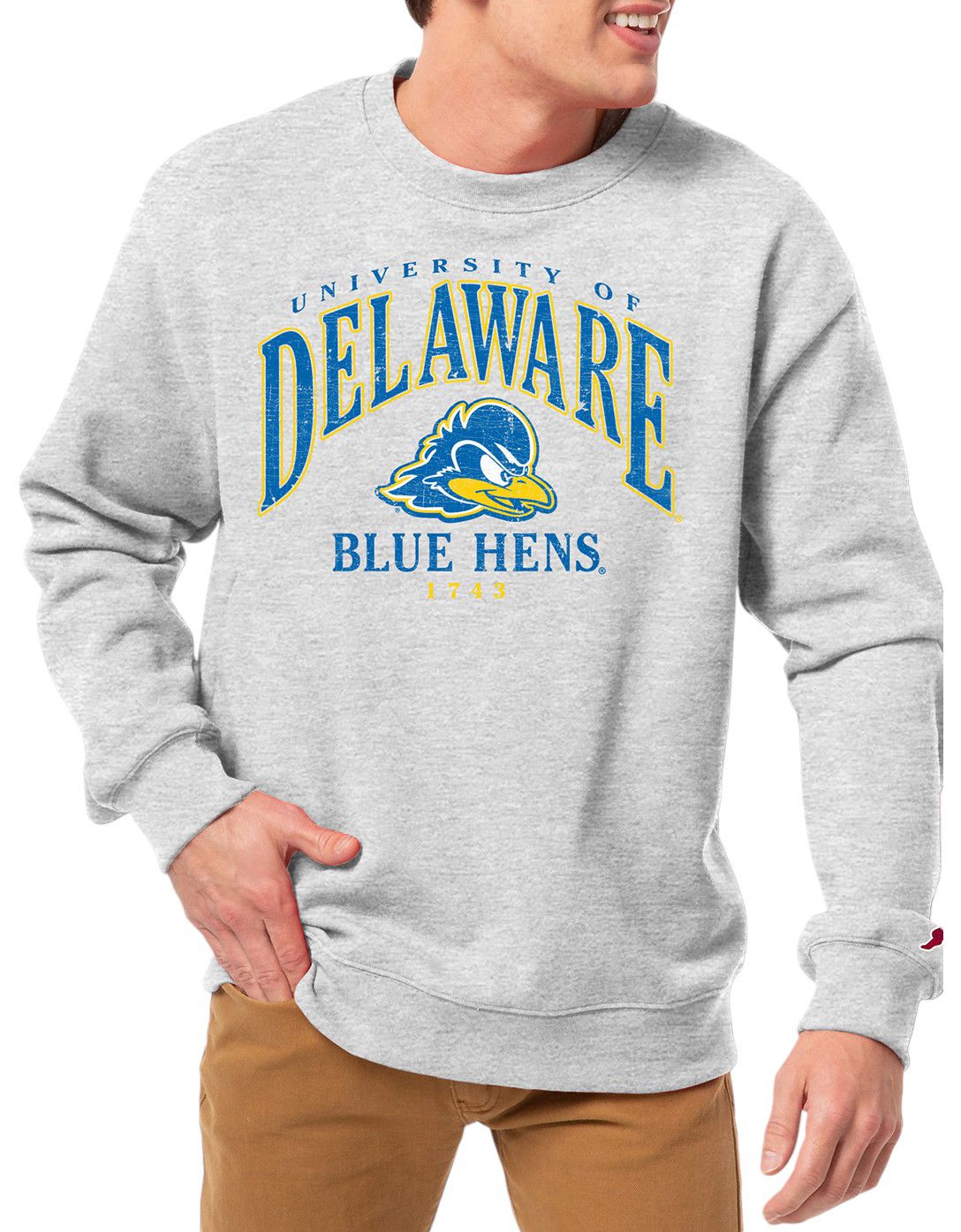 League-Legacy Men's Delaware Fightin' Blue Hens Grey Essential 2.0 Fleece Crew Neck Sweatshirt