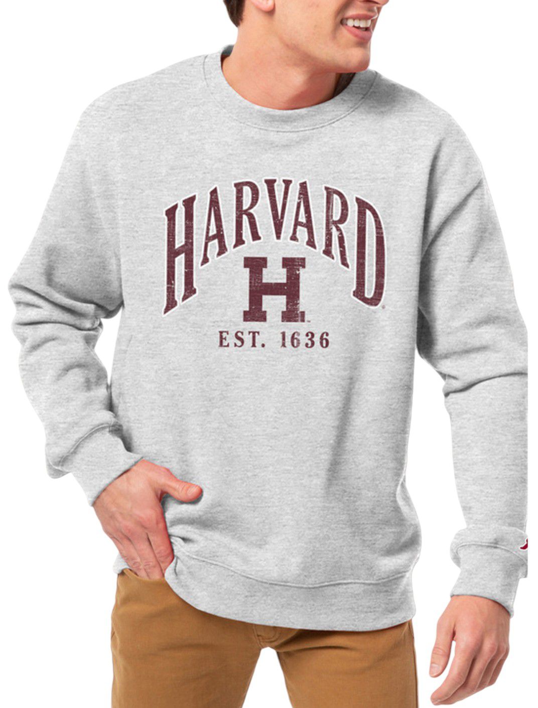 League-Legacy Men's Harvard Crimson Grey Essential 2.0 Fleece Crew Neck Sweatshirt