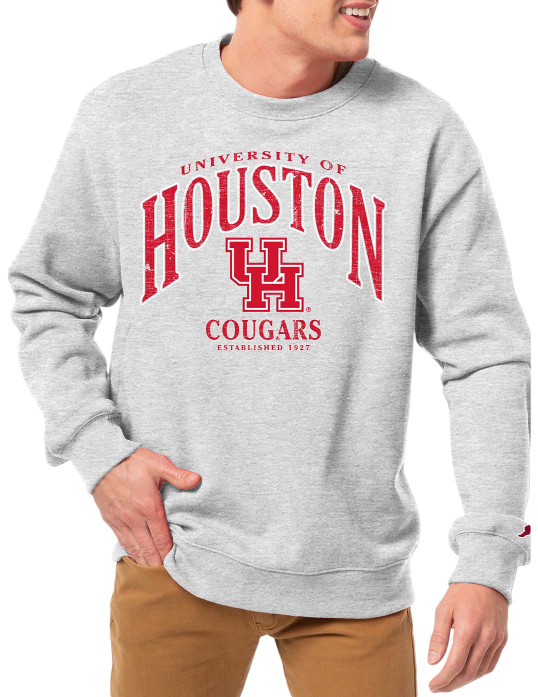 League-Legacy Men's Houston Cougars Grey Essential 2.0 Fleece Crew Neck Sweatshirt
