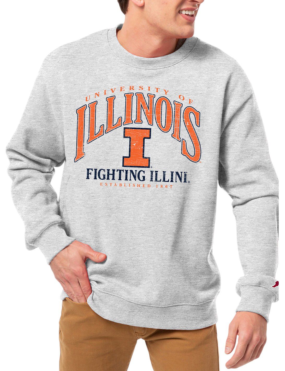 League-Legacy Men's Illinois Fighting Illini Grey Essential 2.0 Fleece Crew Neck Sweatshirt