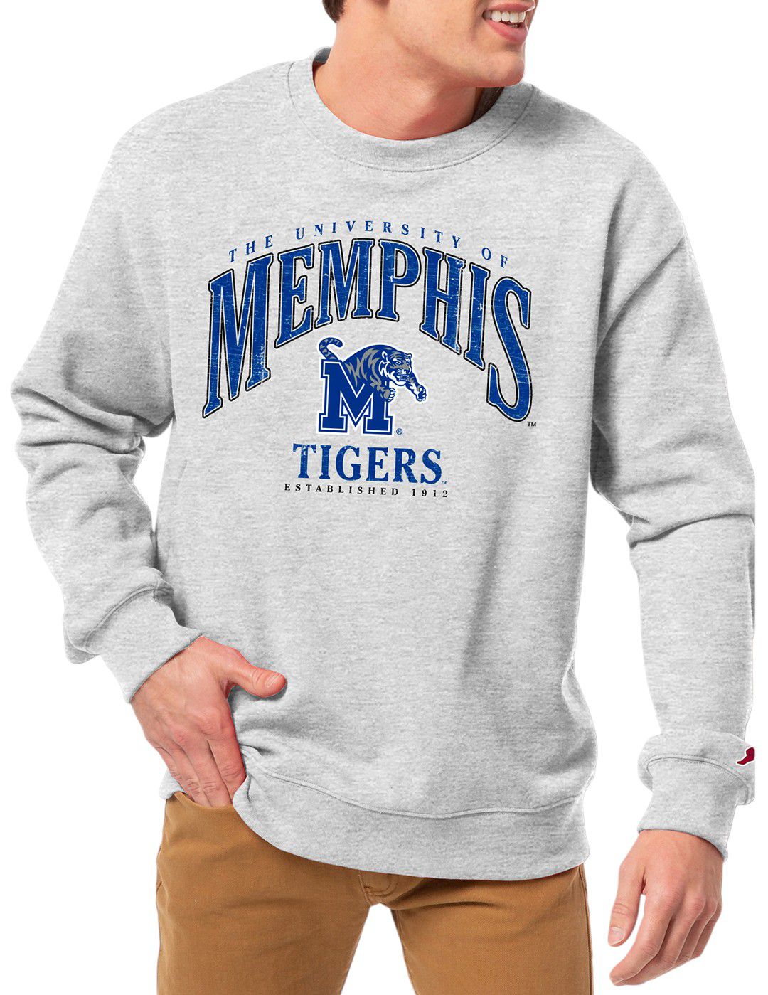 League-Legacy Men's Memphis Tigers Grey Essential 2.0 Fleece Crew Neck Sweatshirt