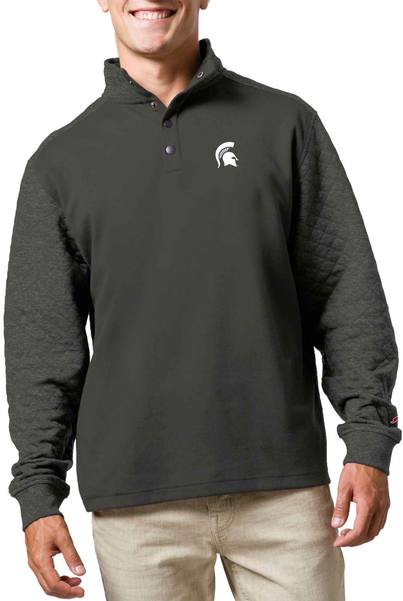League-Legacy Men's Michigan State Spartans Grey Snap Up Quilted Jacket