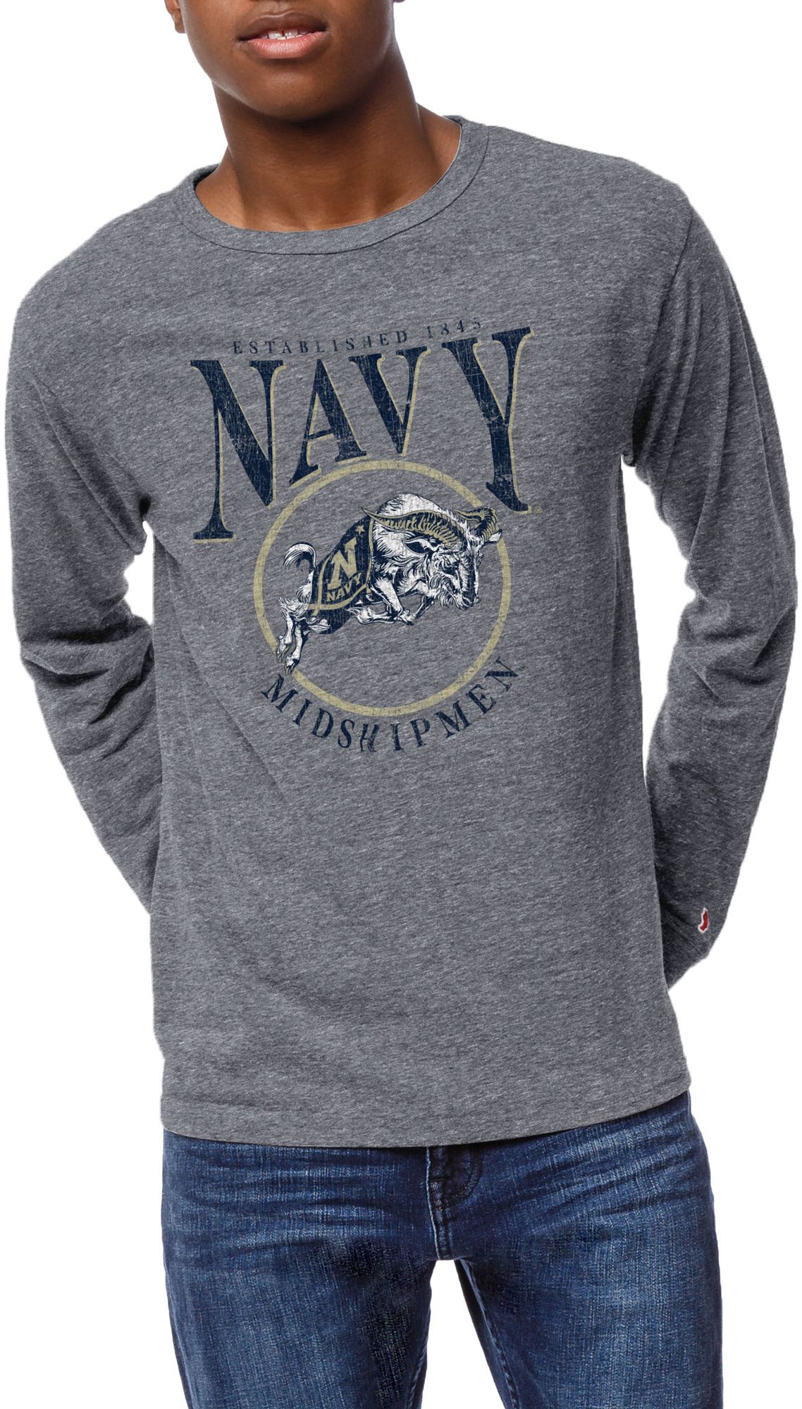 League-Legacy Men's Navy Midshipmen Grey Victory Falls Long Sleeve T-Shirt