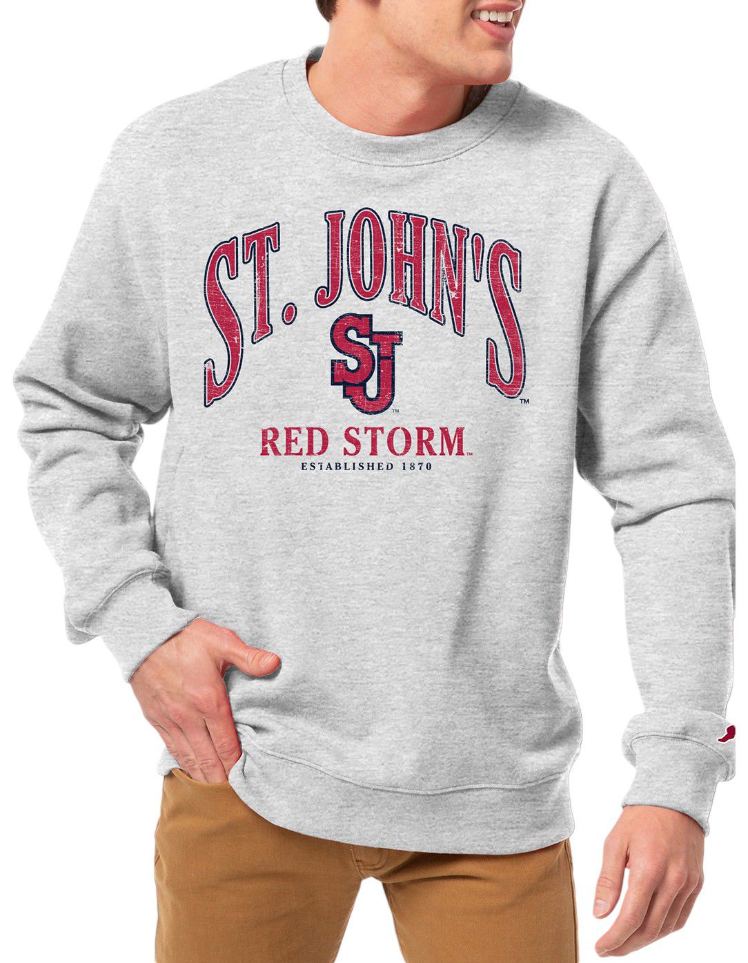 League-Legacy Men's St. John's Red Storm Grey Essential 2.0 Fleece Crew Neck Sweatshirt