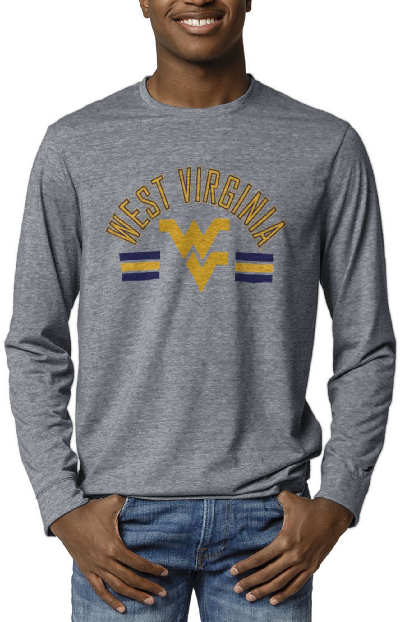 League-Legacy Men's West Virginia Mountaineers Blue Reclaim Tri-Blend Long Sleeve T-Shirt