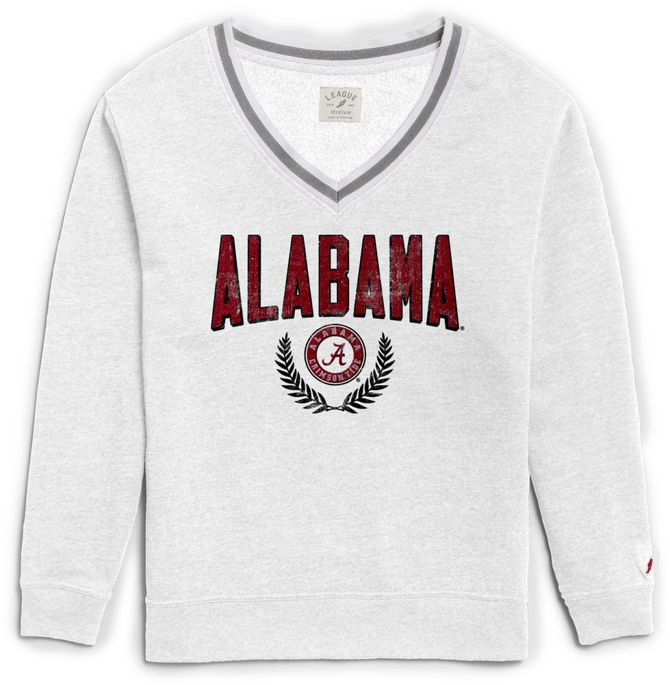 League-Legacy Women's Alabama Crimson Tide Victory Springs White V-Neck Sweatshirt