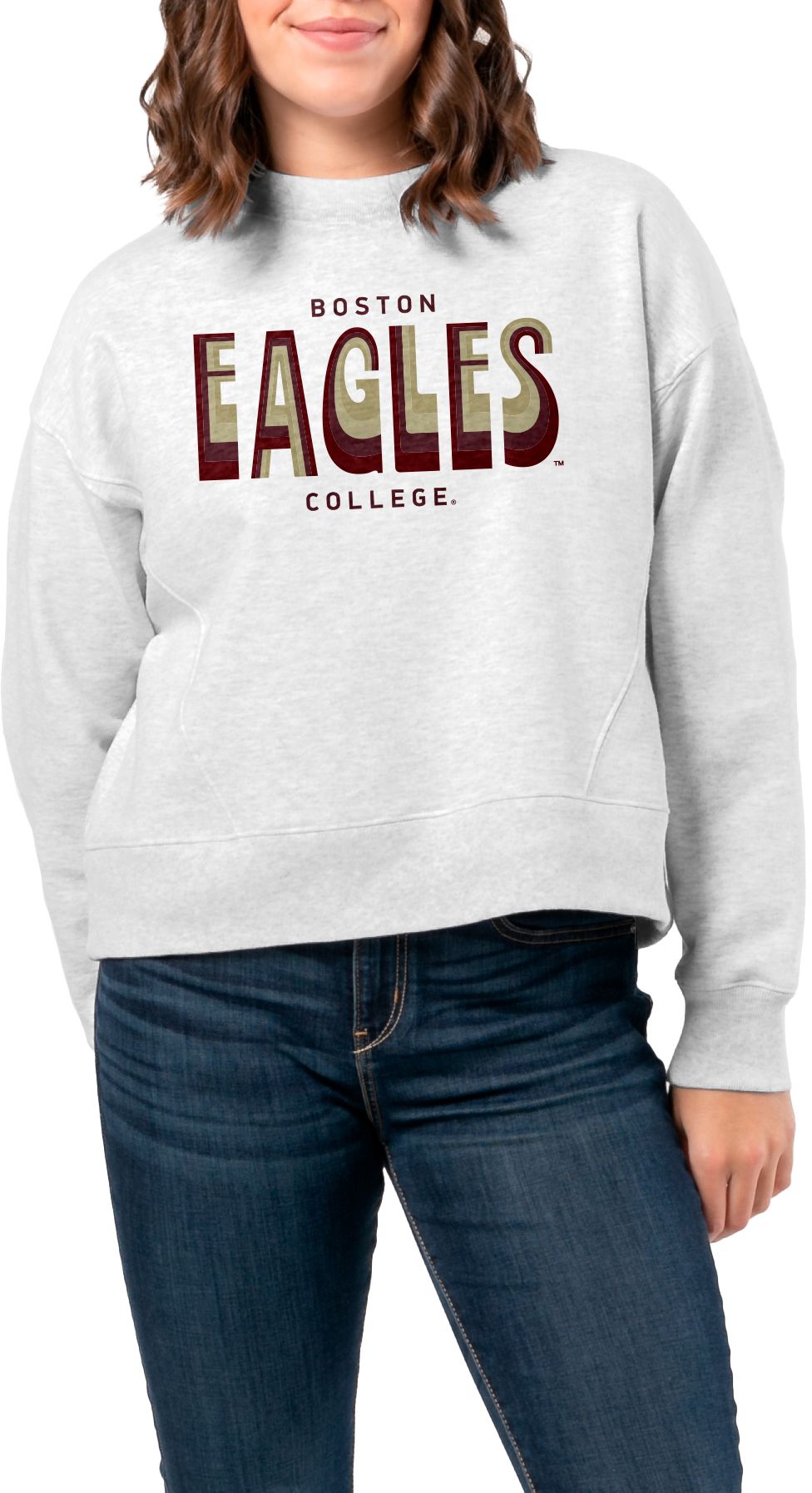 League-Legacy Women's Boston College Eagles Ash Boxy Crew Neck Sweatshirt