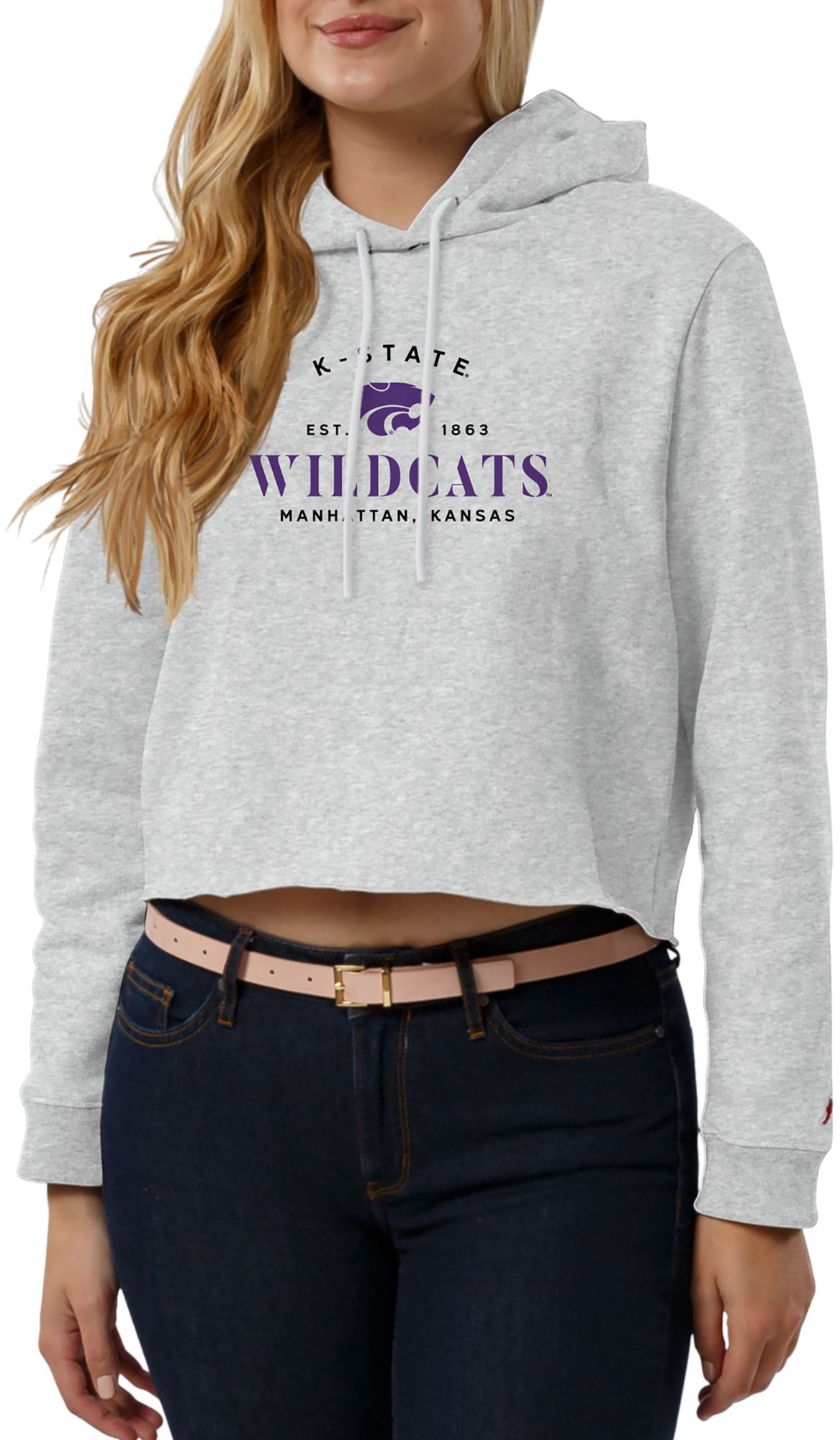League-Legacy Women's Kansas State Wildcats Grey Cropped Hoodie