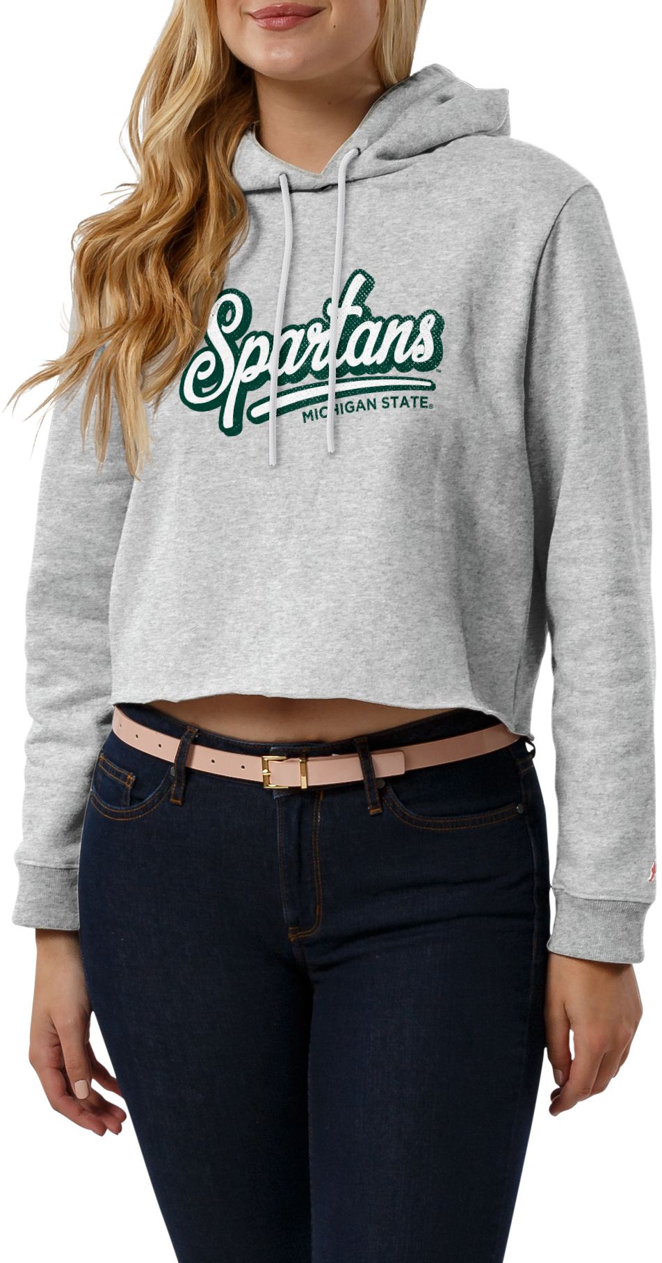 League-Legacy Women's Michigan State Spartans Ash Cropped Hoodie