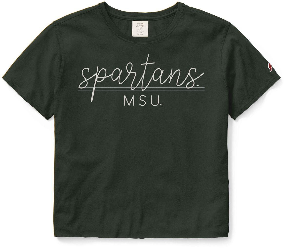 League-Legacy Women's Michigan State Spartans Green Clothesline Cotton Crop T-Shirt