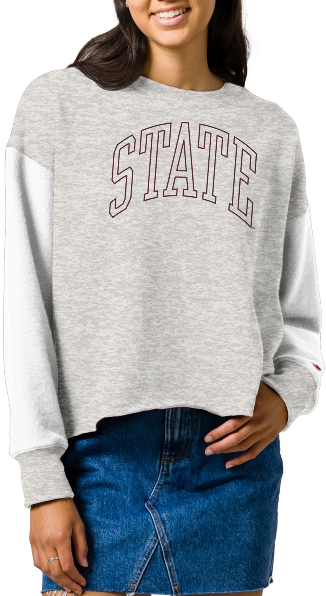 League-Legacy Women's Mississippi State Bulldogs Grey Rev Crew Sweatshirt