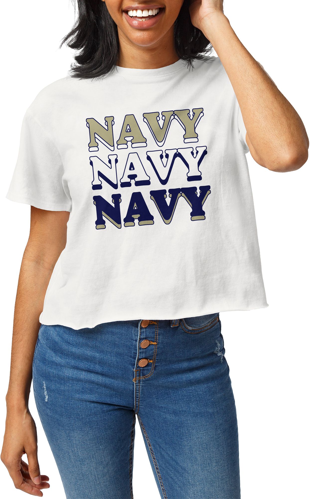 League-Legacy Women's Navy Midshipmen White Clothesline Cotton Crop T-Shirt