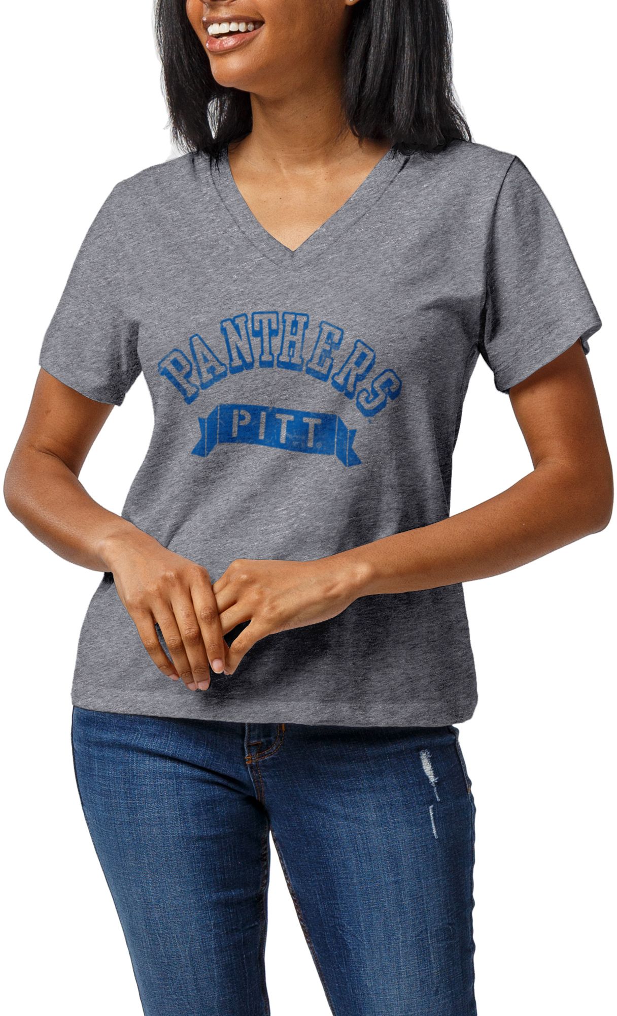 League-Legacy Women's Pitt Panthers Grey Intramural Boyfriend V-Neck T-Shirt