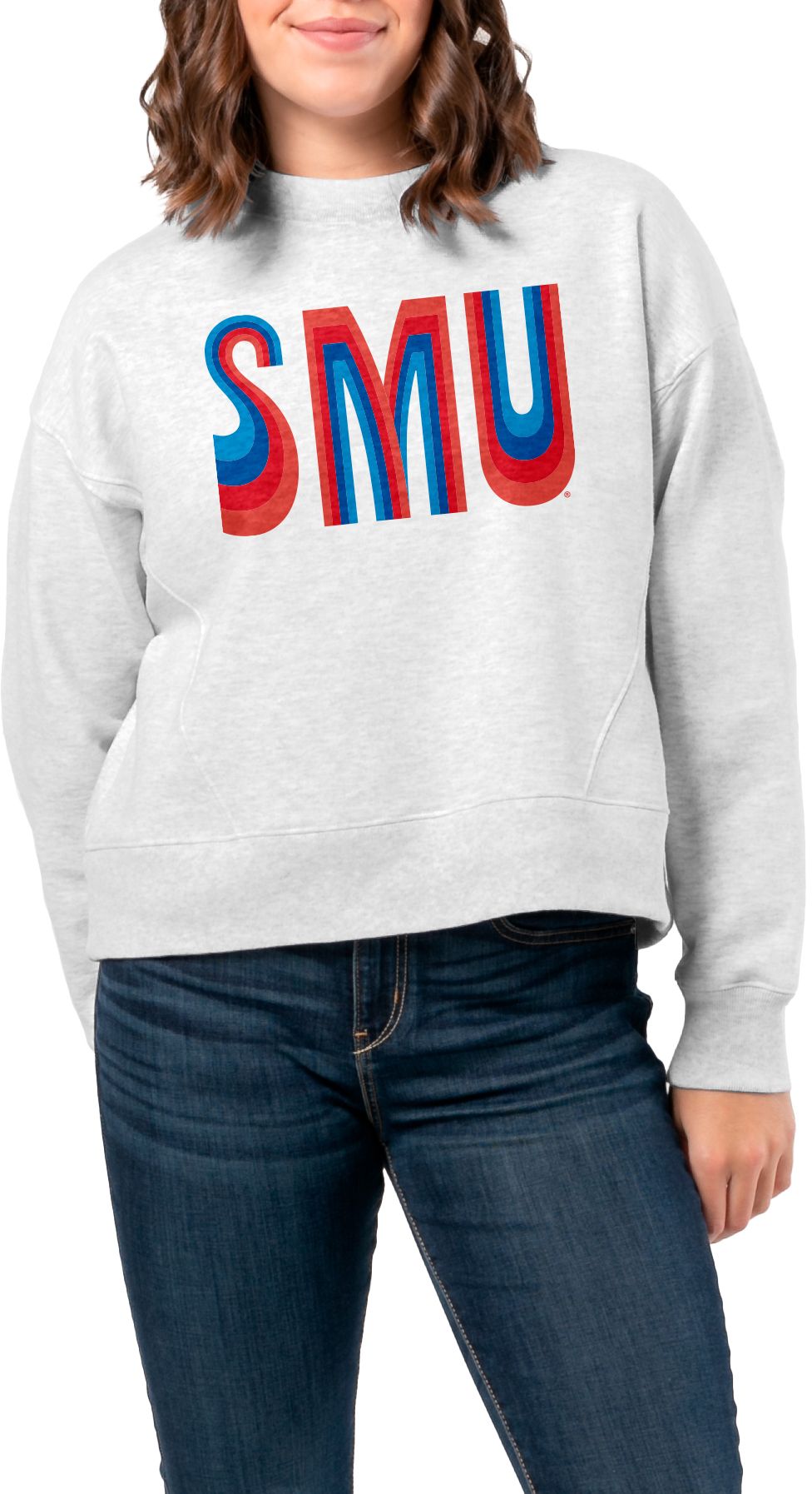 League-Legacy Women's Southern Methodist Mustangs Ash Boxy Crew Neck Sweatshirt