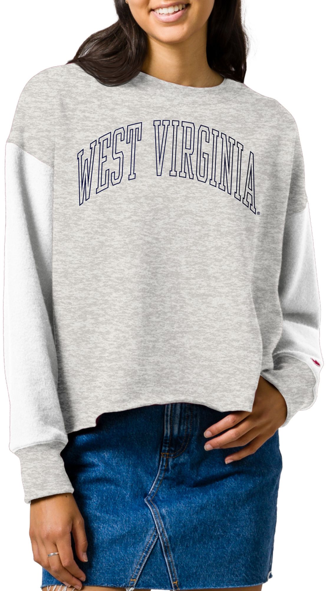 League-Legacy Women's West Virginia Mountaineers Grey Rev Crew Sweatshirt