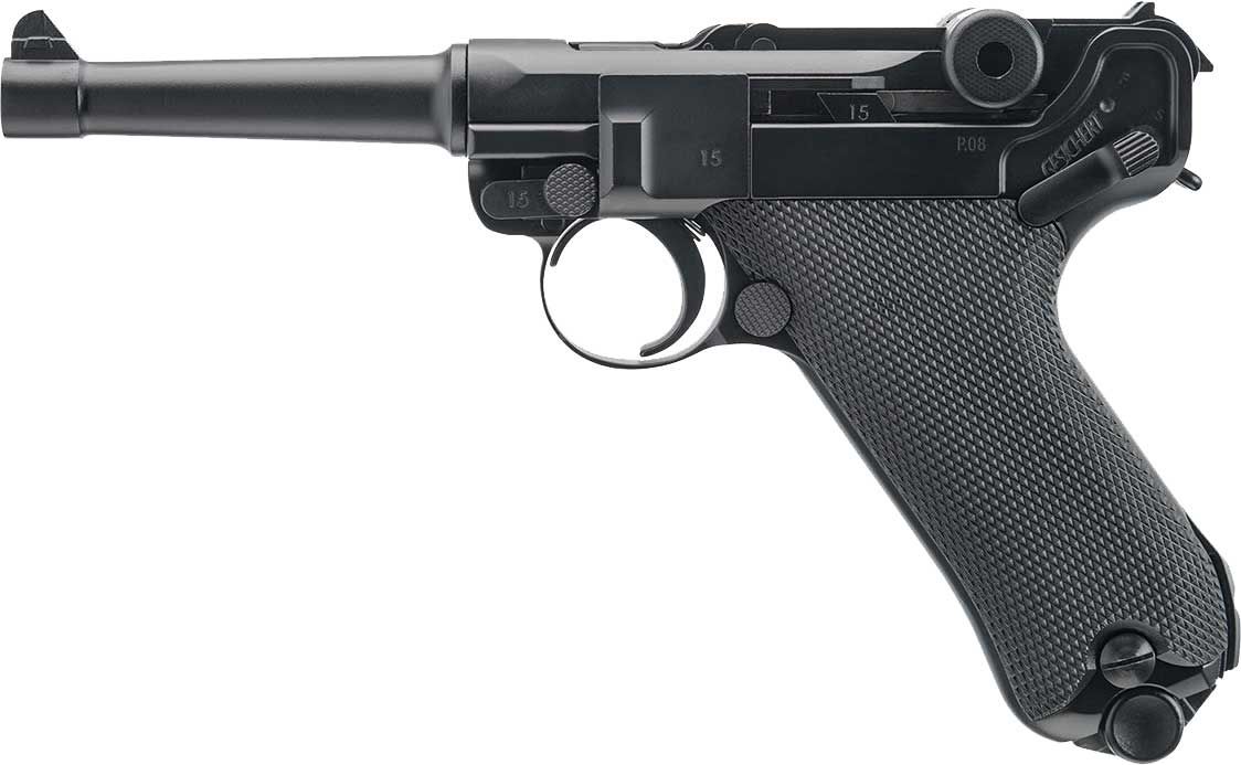 Designed to deliver an extremely realistic feel and action, the Legends® P.08 Blowback BB Gun will be a welcome addition to any shooter’s gun collection. With an unbelievably life-like blowback action that is similar to the original German handgun, the P.08 is powered by C02 and constructed from metal parts to provide a realistic weight and feel in hand. The Legends® P.08 BB Gun also offers semi-automatic action and a 21 round magazine.