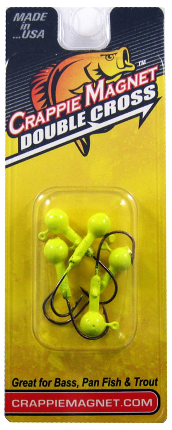 The Leland’s Crappie Magnet™ Double Cross Jig Head makes the perfect crappie hook with its size and strength. The Double Cross combines the length of a size 2 hook and the gap of a size 4 hook. This jig head is durable, yet light enough to free itself from a tangle, and its unique design holds a jig body longer without compromising the hook gap. The Double Cross Jig Head is extra-long and lead-shanked for a perfectly balanced body.