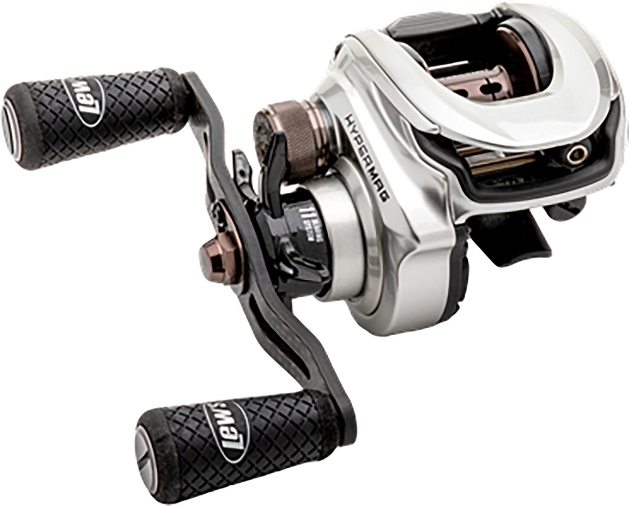 Continuing to push the limits of innovation and performance, Team Lew’s has redesigned the HyperMag baitcast reel to enhance not only function, but experience. The HyperMag baitcast reel includes the P2 Super Pinion® double bearing supported pinion gear, offering a better gear mesh for smoothness and extended gear life. The ergonomic one-piece magnesium frame and C40 carbon sideplates are strong and extremely lightweight, with the reel weighing in at only 5.2 oz. The “barely-there” feel of this reel is ever-present, giving anglers the comfort and control they desire. The features don’t stop there – the recessed brake adjustment dial contributes to the low-profile design, the Speed Knot™ quick line attachment spool enables easy and quick line attachment, and the JDM-style Winn® handle knobs provide outstanding grip and comfort. In line with the original, the new HyperMag has a 4-pin SpeedCast® externally Adjustable Centrifugal Brake (ACB) system, 11 bearing system, Speed Keeper® hook keeper, and Speed Dial® line indicator, bringing all of the best features together in one of Lew’s lightest, most efficient baitcast reel to date