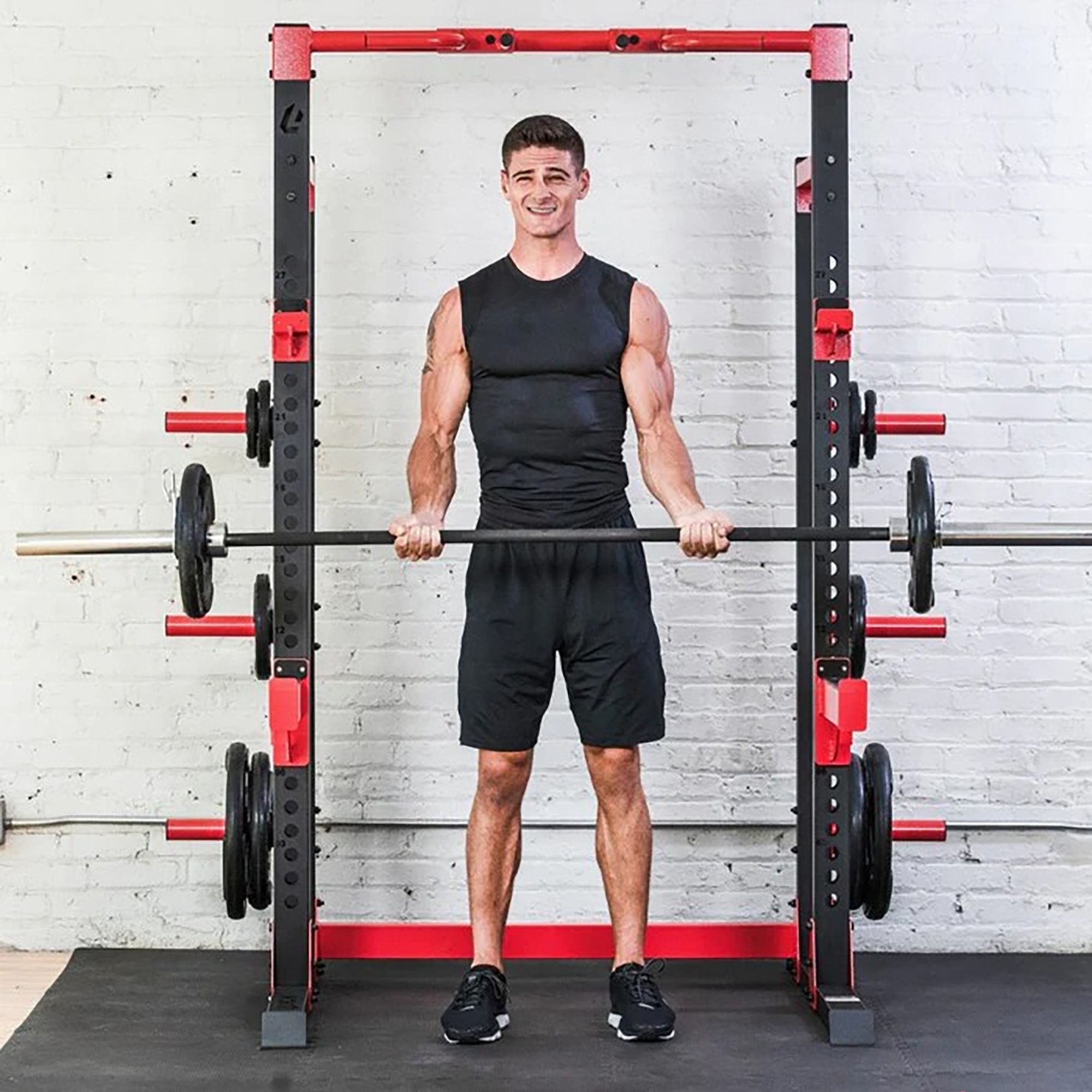 The Lifeline C1 Half Rack is perfect for Olympic WeightLifters and the Functional Training athlete who are looking for a home gym solution. It is perfect for low ceiling and cramped training areas like garages and basements, the C1 Half Rack can be the focal point of your home gym area, allowing all the other strength products and functional training tools to work off or around it. The C1 Half Rack is built using heavy duty 2 inchD x 3 inchW, 11-gauge steel framing with a floor mount base support designed to add stability, it has been tested to hold over 1,000lbs.