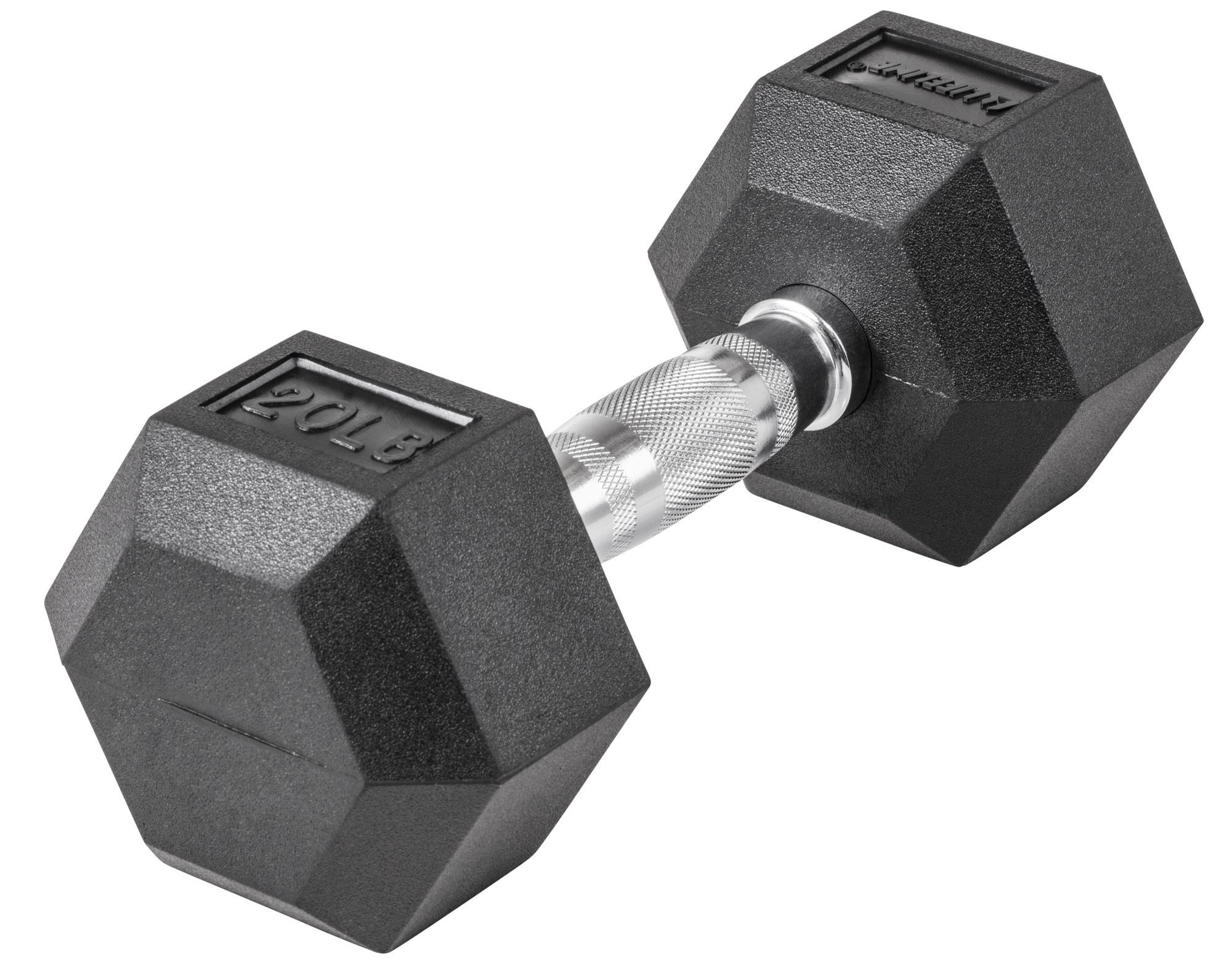 The Lifeline® Hex Rubber Dumbbells are available in weights from 5lb to 120lb in 5lb increments. The triple knurled chrome handles are ergonomically designed for a secure, comfortable grip and the rubber over-molded heads protect both your floor and the dumbbells while diminishing noise. The heads are secured to the handles with high pressure and heat to provide a strong, stable joint.